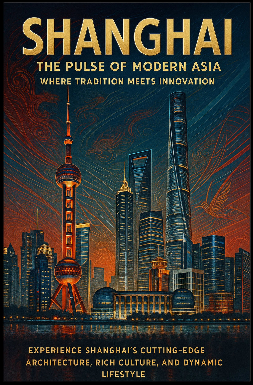 Iconic city imagery captures Shanghai’s silhouette, delivering instant urban sophistication and a focal point that sparks conversation.
