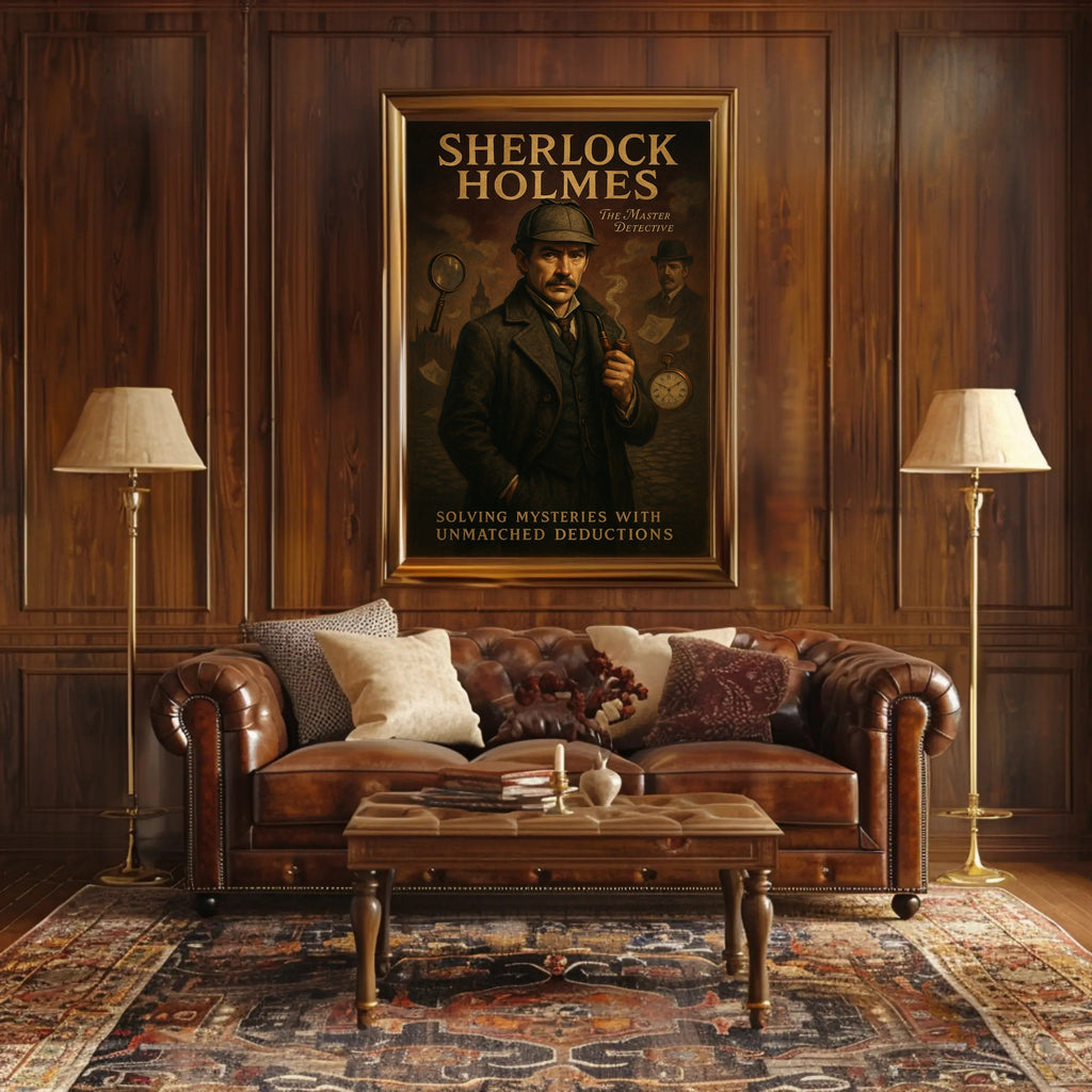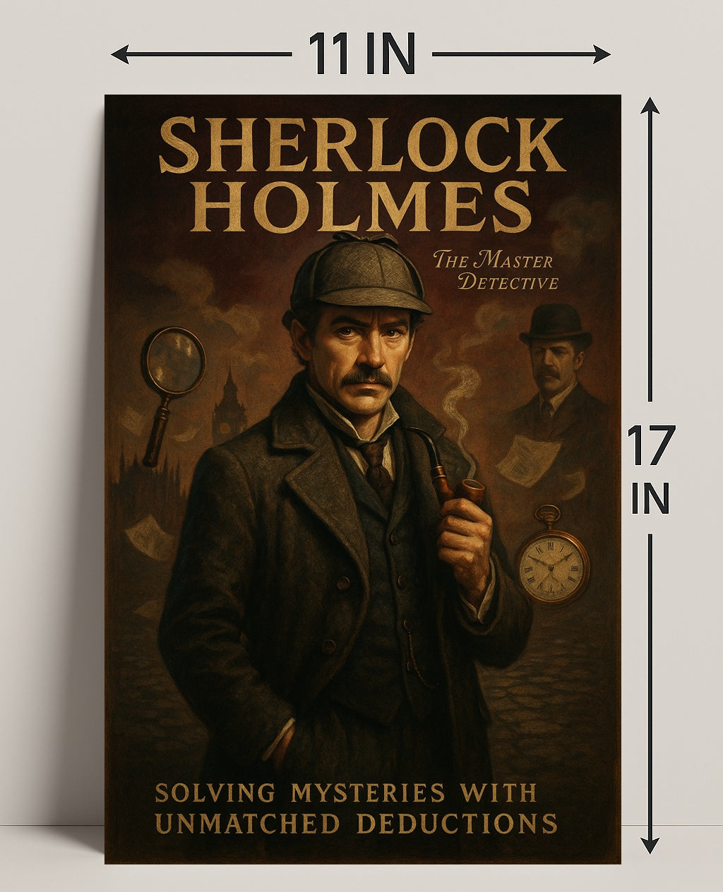 Captivating Design: Featuring a classic depiction of Sherlock Holmes, this poster is a visual feast for any admirer of art and detective stories.
