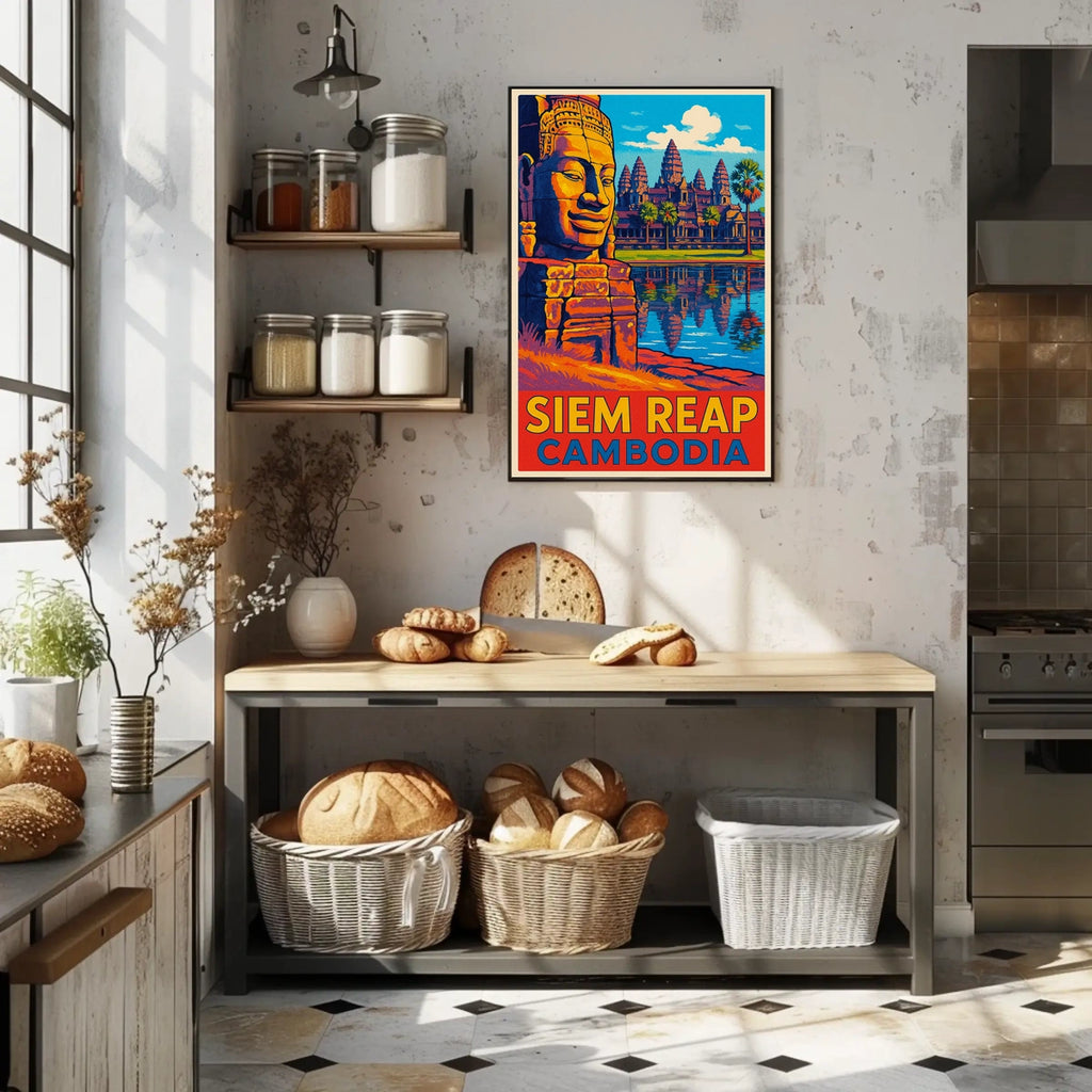 This poster captures the essence of Siem Reap, Cambodia. Designed for decor lovers and wanderlust spirits, this art print adds charm to any room with visuals inspired by real-world scenery.