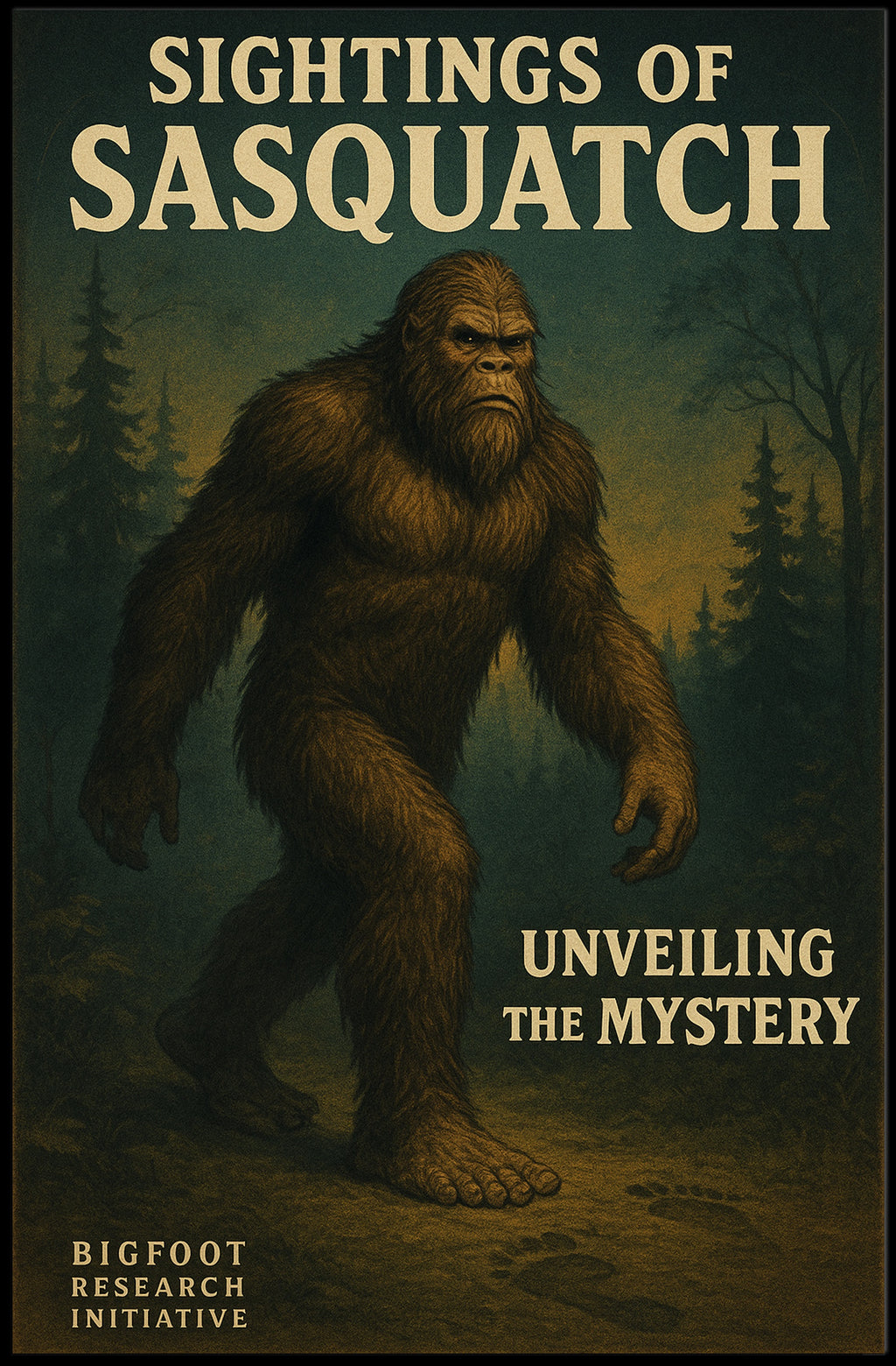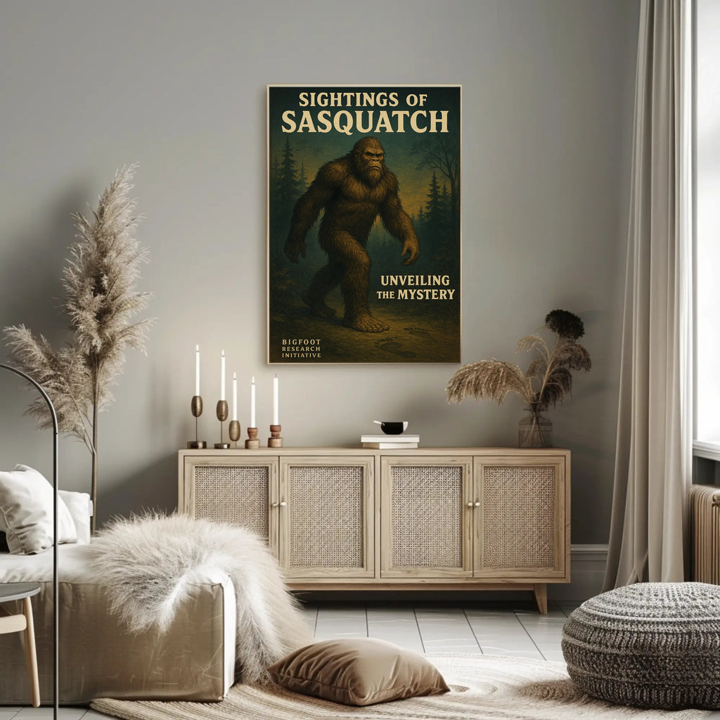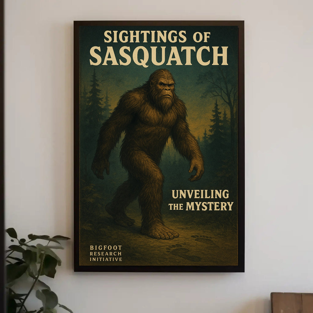 Discover the legend — add the Sightings of Sasquatch Wall Art Print to your cart from PosterGoat today and unveil the mystery in your space.