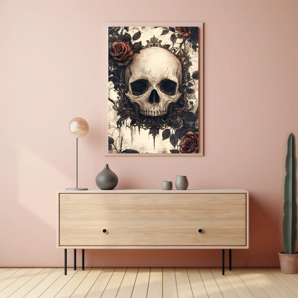 Unique Design: The poster features a stunning visual of a skull surrounded by roses, symbolizing the balance between life and death, which resonates with art lovers.