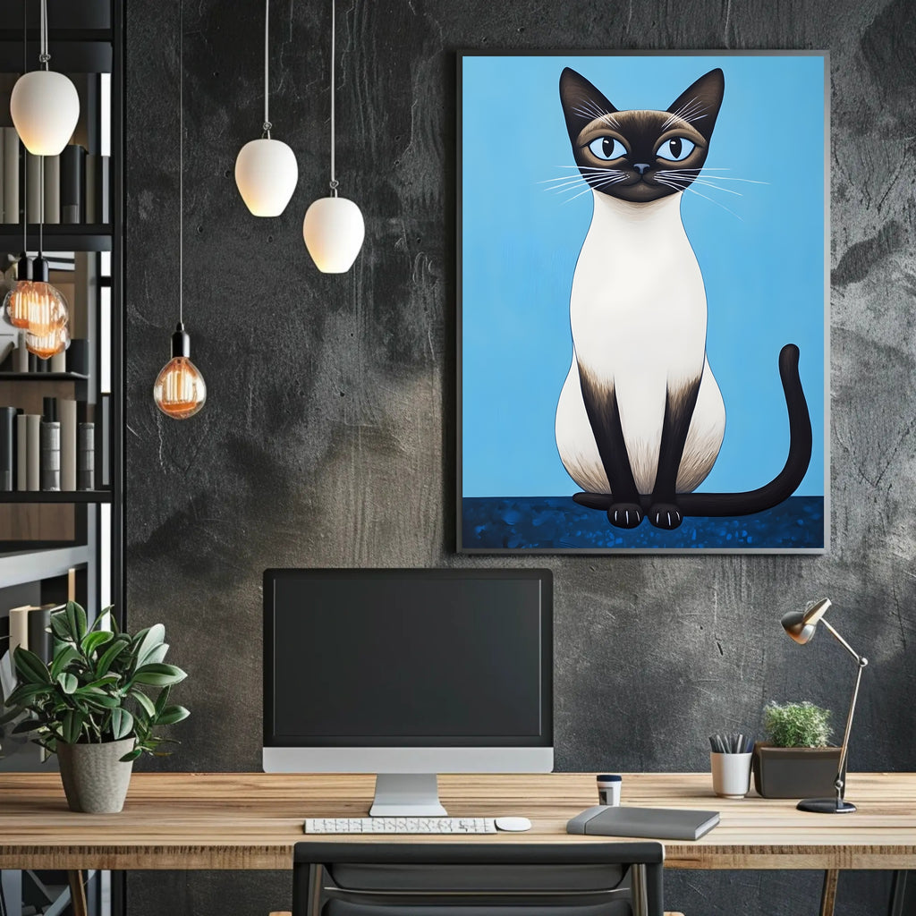 - Minimalist aesthetic: Clean lines, simplified shapes and subtle texture capture the sleek silhouette of a Siamese‑inspired feline — ideal for modern, Scandinavian, or mid‑century interiors.
