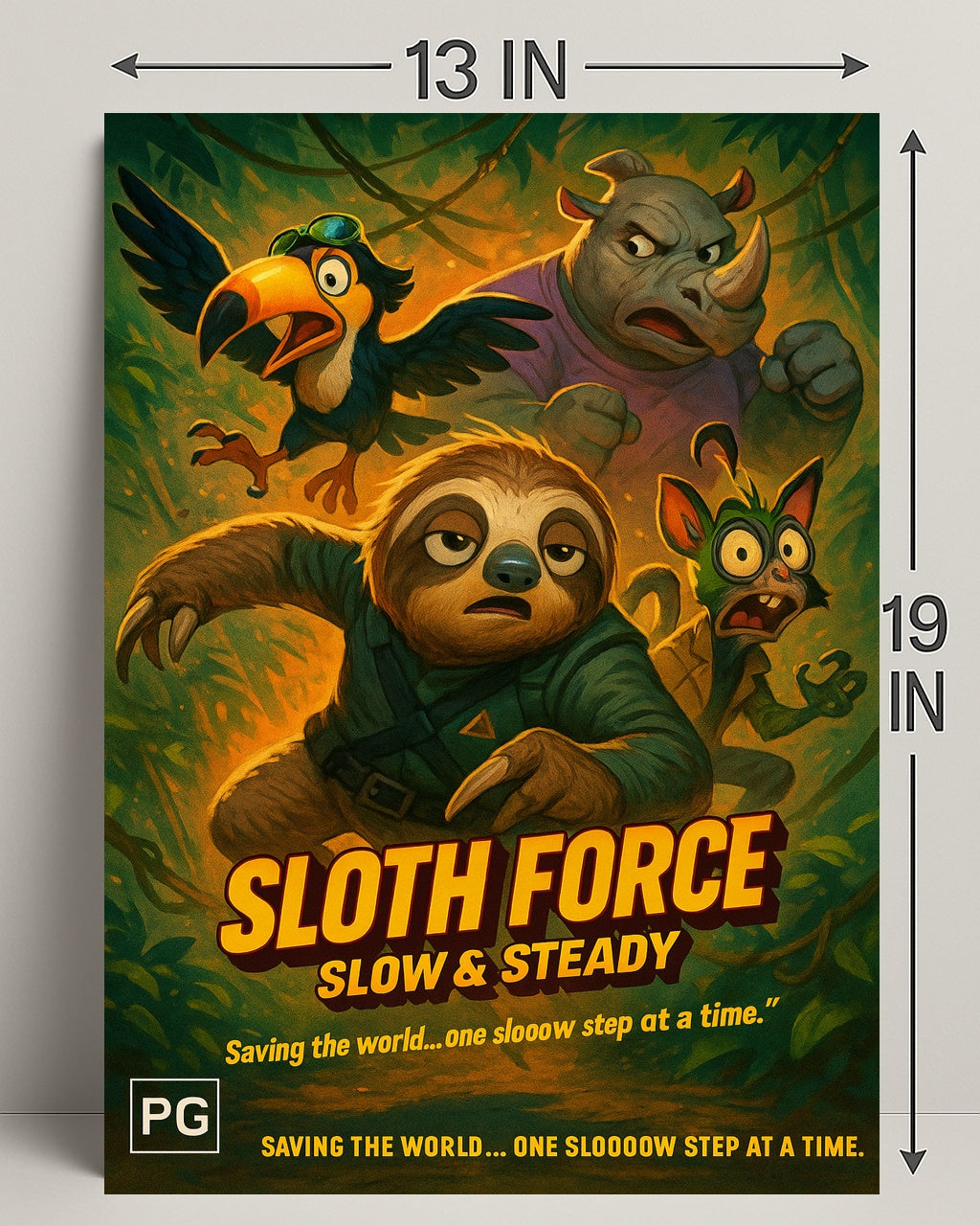 Elevate your decor with the Sloth Force Slow Steady Poster. Its captivating imagery and quality craftsmanship make it a must-have for art enthusiasts. Don't miss out on adding this charming piece to your collection—order yours today!