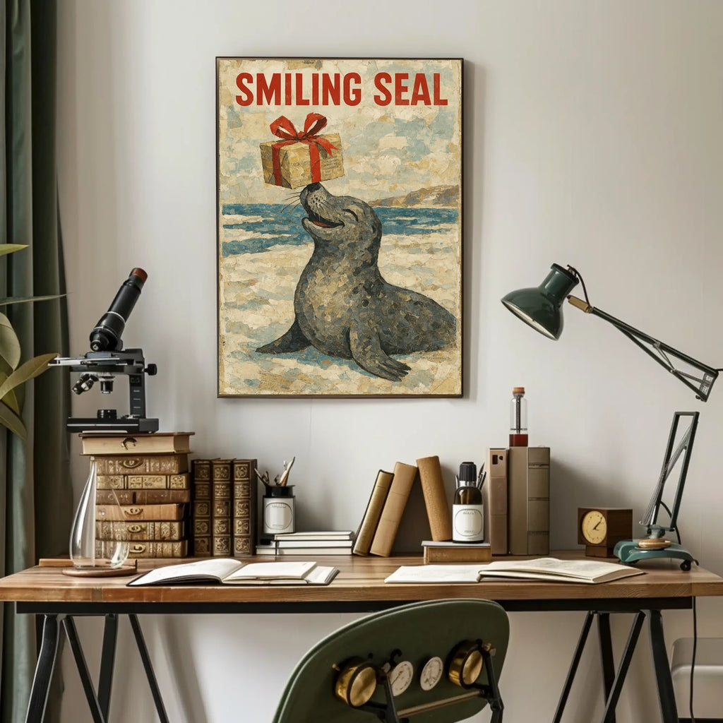 Featuring a smiling seal set against evocative, real-world scenery, this art print adds warmth and personality to any room. Its vibrant visuals invite curiosity and conversation, making it a delightful addition to living rooms, bedrooms, or workspaces.