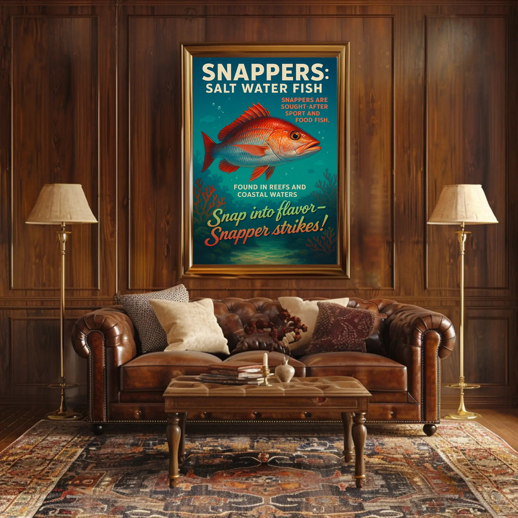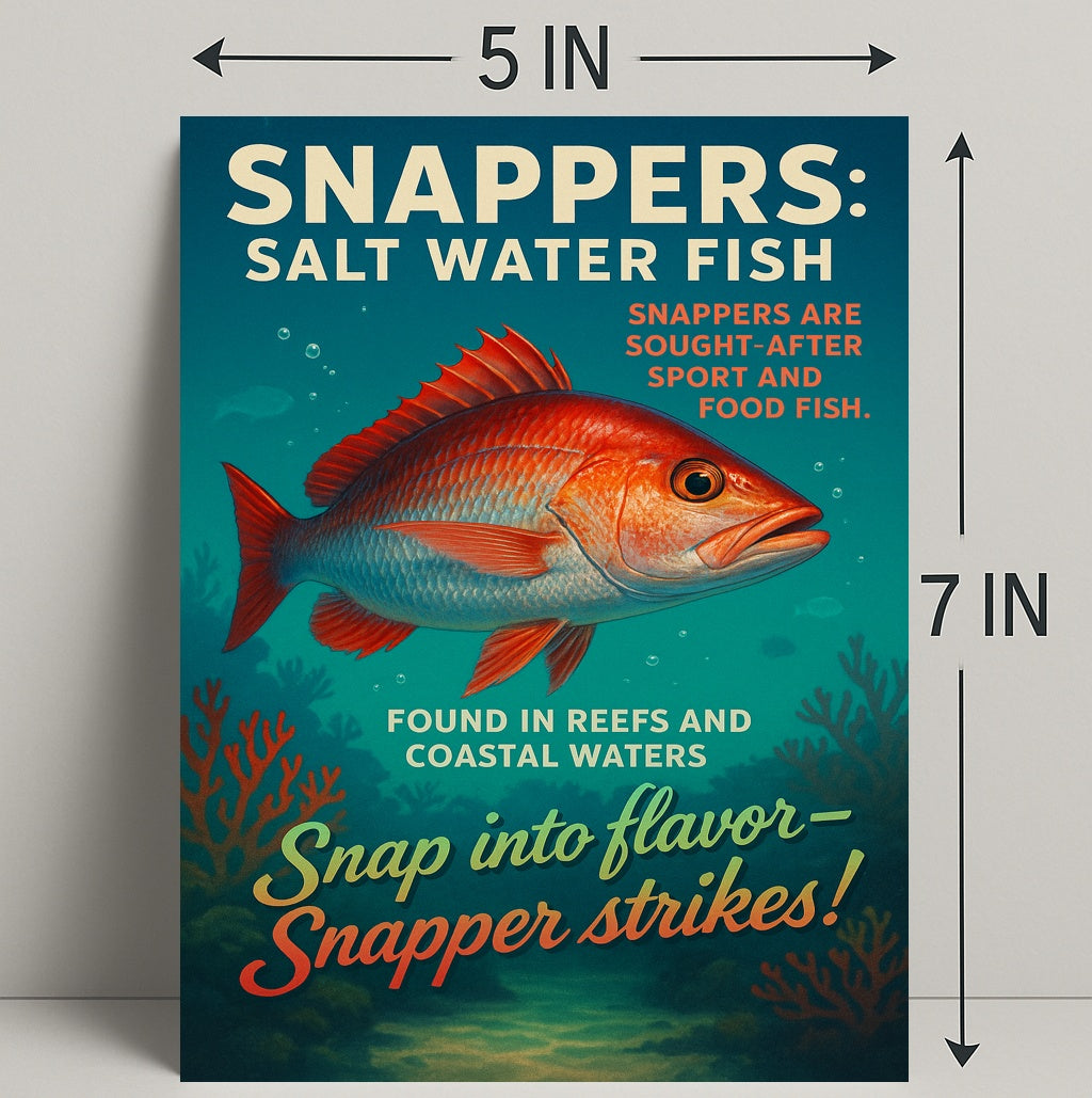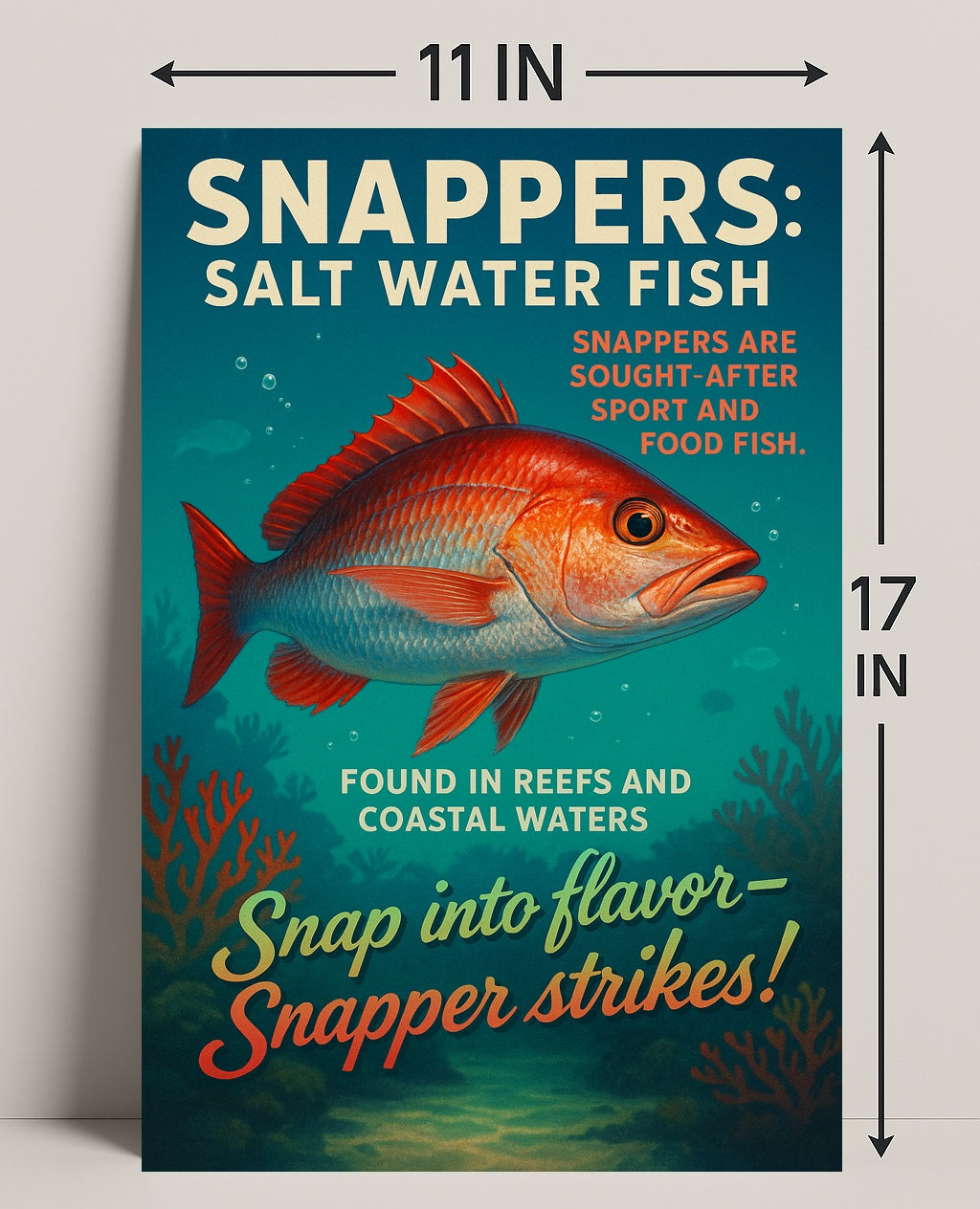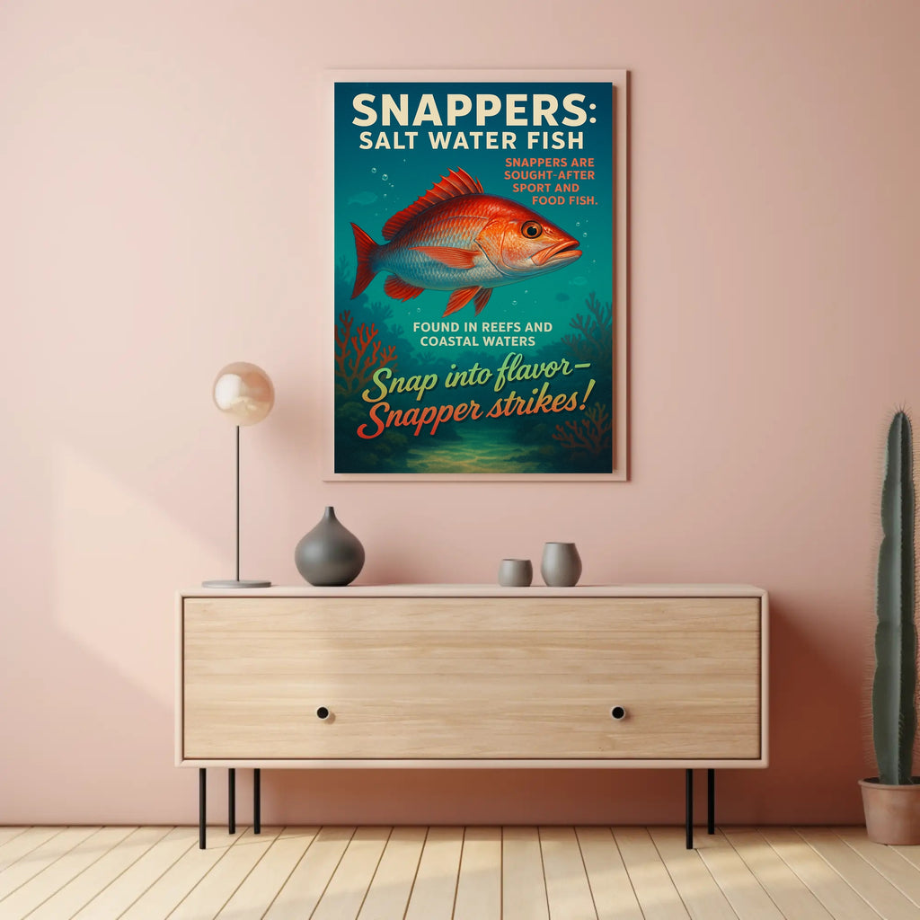 This poster makes a memorable gift or souvenir and is ideal for framing to create an instant statement wall. Add a coastal touch to your space—order the Snappers Salt Water Fish Poster from PosterGoat today and snap into flavor with standout wall art.