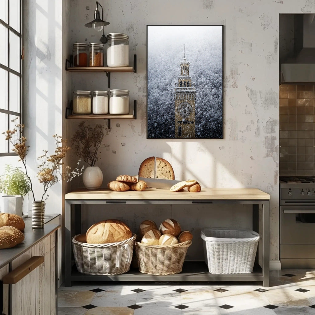 This poster captures the essence of Snow-Covered Clock Tower. Designed for decor lovers and wanderlust spirits, this art print adds charm to any room with visuals inspired by real-world scenery.