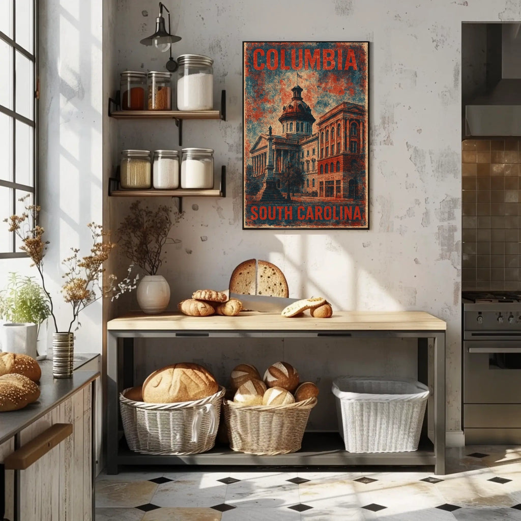 Whether displayed in a living room, study, classroom, or office, this poster complements South Carolina decor and Columbia art themes, while appealing to fans of historical landmarks, vintage travel posters, and Americana decor.