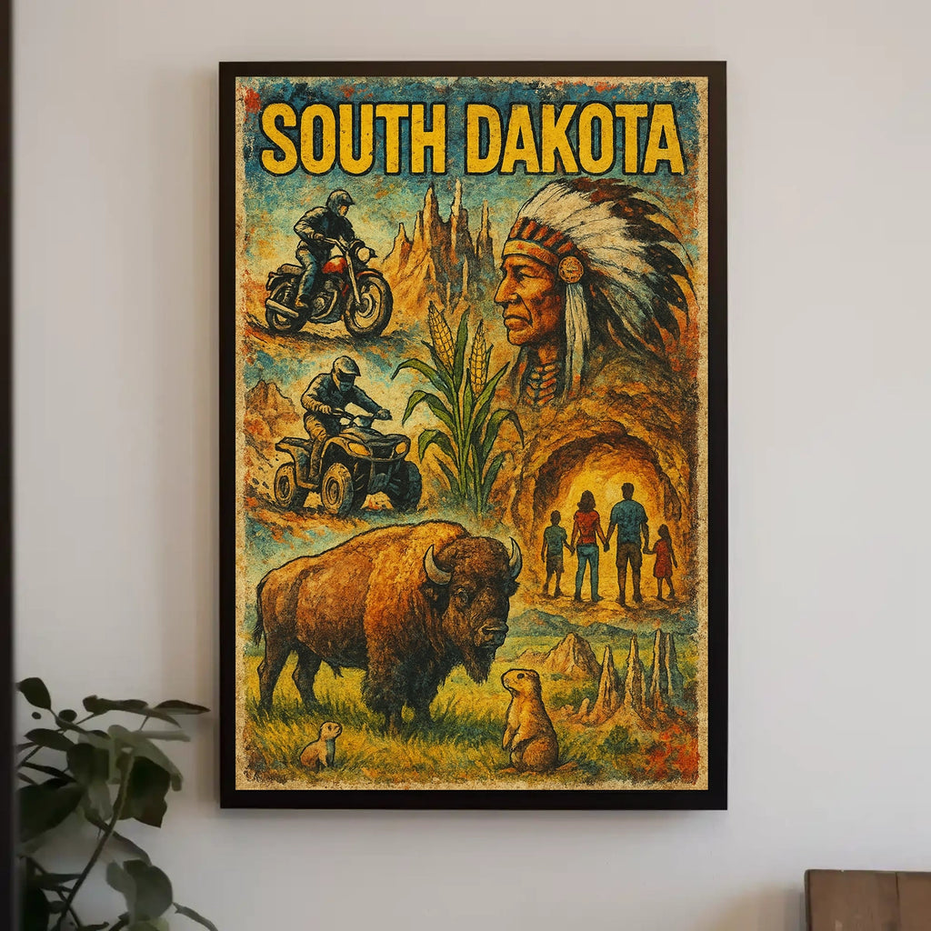 - Printed with precision and made to inspire, this artwork is more than decoration—it’s a conversation piece that connects history, culture, and style. Bring South Dakota Adventure Poster into your home, classroom, or office today and let your walls tell a powerful story.