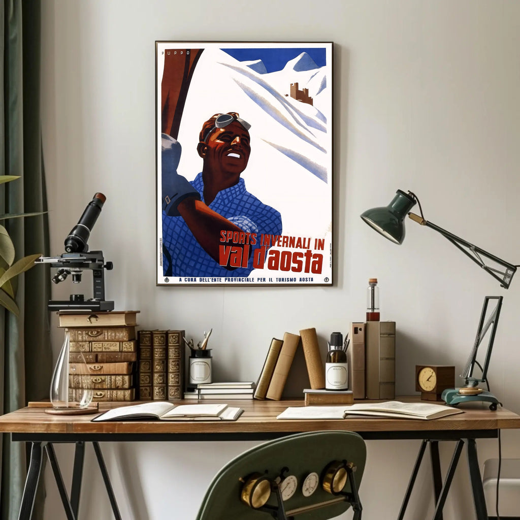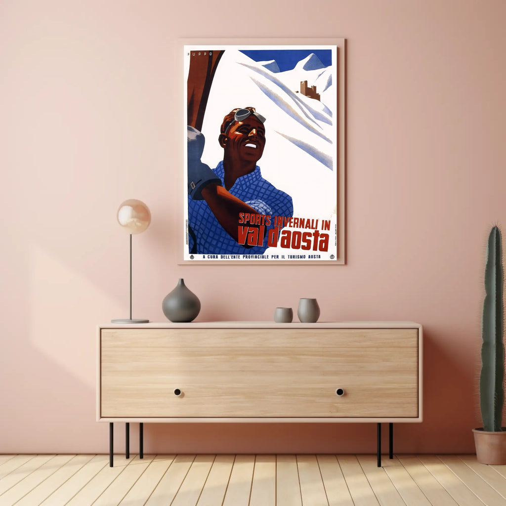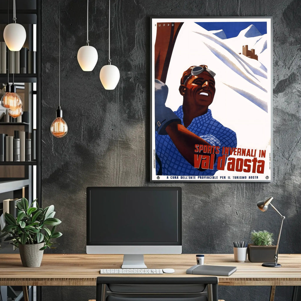 Whether you want to evoke nostalgia, celebrate mountain sports, or add a bold focal point to a neutral room, this poster pairs especially well with clean, modern frames and minimalist interiors. Bring home the spirit of Val d'Aosta — order your Sports Invernali in Val d'Aosta Poster from PosterGoat today and transform your space with a piece of classic travel art.