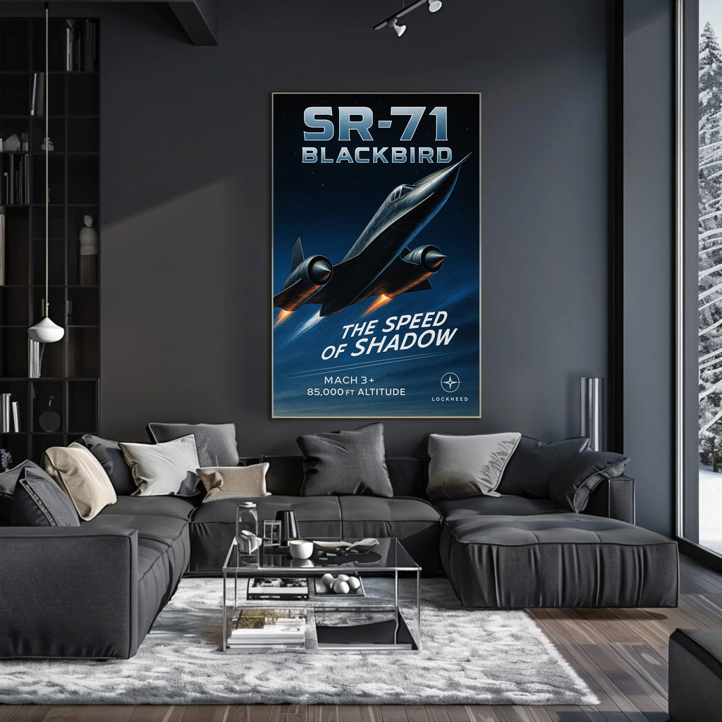 Whether you’re curating a gallery wall or seeking a single statement piece, the SR-71 Blackbird "Speed of Shadow" poster brings speed, mystery, and technical elegance to your decor. Add this PosterGoat exclusive to your space today and let the legend of the Blackbird lift your room to new altitudes.