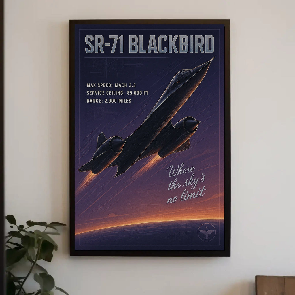 Capture the SR-71 Blackbird—the speed icon—in a wall-ready poster that fits right into Home & Garden decor. This print blends aviation history with modern style, offering a clean, photographic realism and a dash of futurism that's easy to love. Hang it in seconds and let the imagery do the talking.