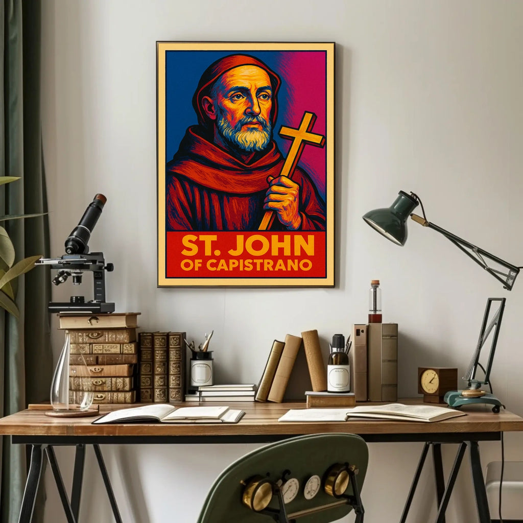- Printed with precision and made to inspire, this artwork is more than decoration—it’s a conversation piece that connects history, culture, and style. Bring St. John of Capistrano into your home, classroom, or office today and let your walls tell a powerful story.