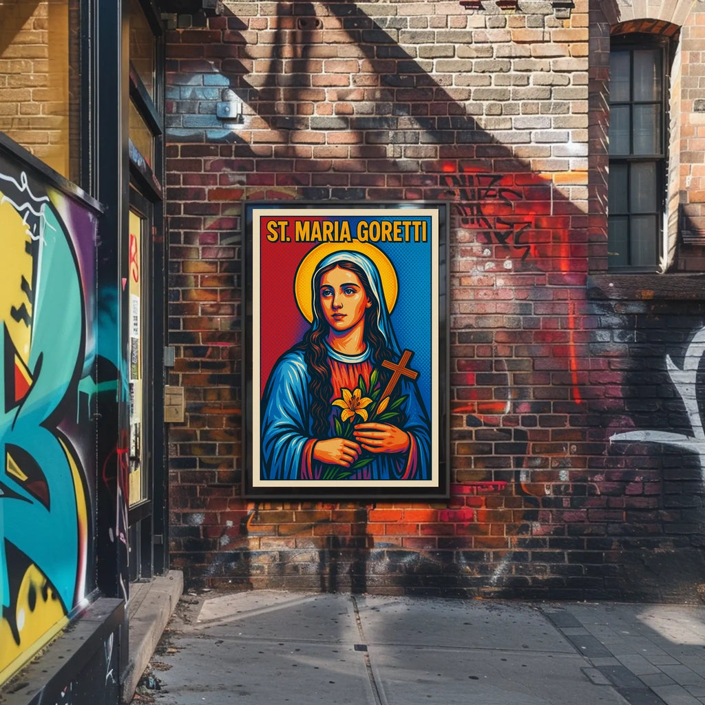 - Printed with precision and made to inspire, this artwork is more than decoration—it’s a conversation piece that connects history, culture, and style. Bring St. Maria Goretti into your home, classroom, or office today and let your walls tell a powerful story.
