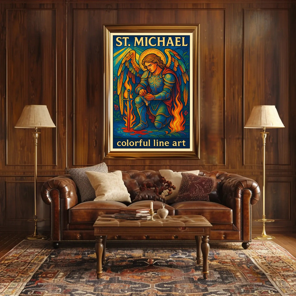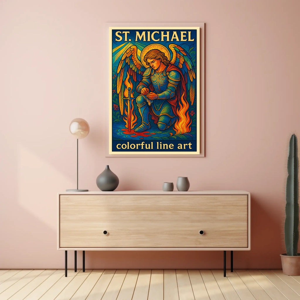 - Printed with precision and made to inspire, this artwork is more than decoration—it’s a conversation piece that connects faith, culture, and style. Bring St. Michael Colorful Line Art Poster into your home, classroom, or office today and let your walls tell a powerful story.