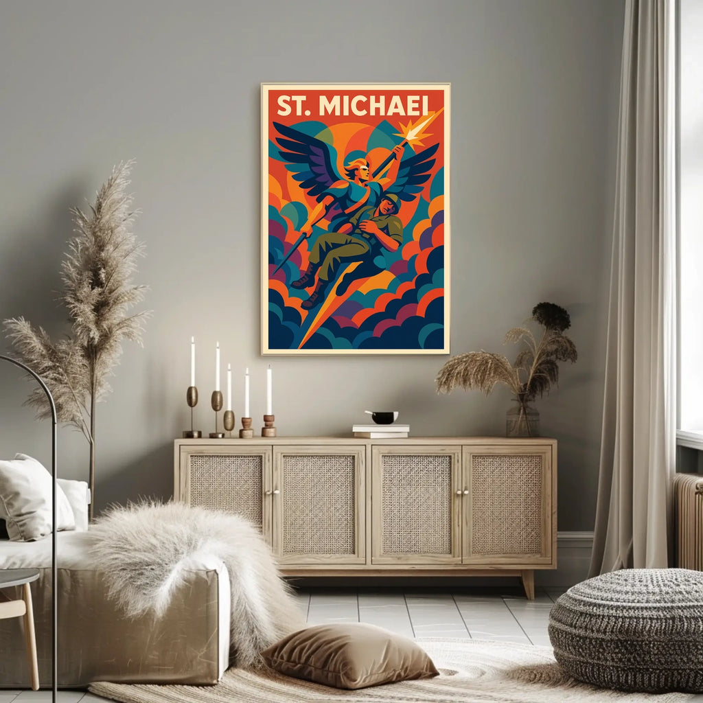 This poster captures the essence of St. Michael with visuals inspired by real-world scenery, making it a versatile addition for any room—from living areas to study nooks and sacred spaces.