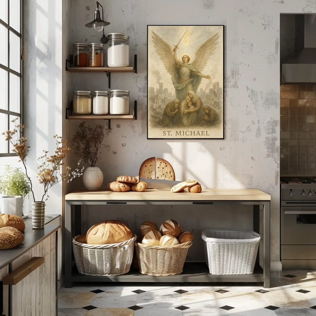 St. Michael Poster captures the essence of the archangel with visuals inspired by real-world scenery, adding charm to any room for decor lovers and wanderlust spirits alike.