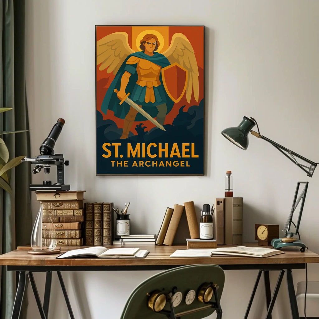 Embrace sacred decor for home or office with this St. Michael The Archangel poster—a striking addition to any gallery wall and a meaningful gift for those who treasure archangel art and wall art.