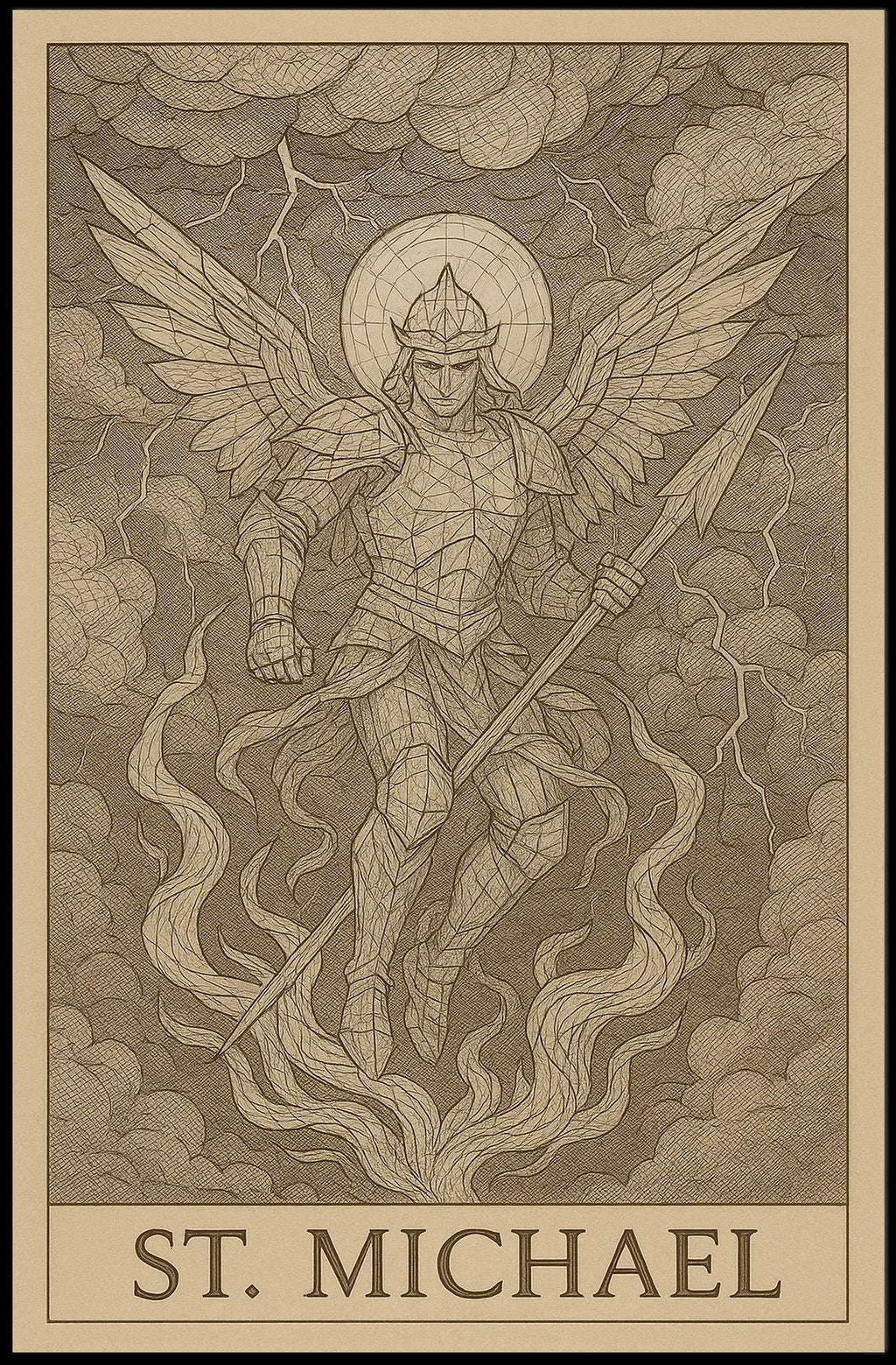 Detailed design highlighting St. Michael's regal figure and celestial symbolism