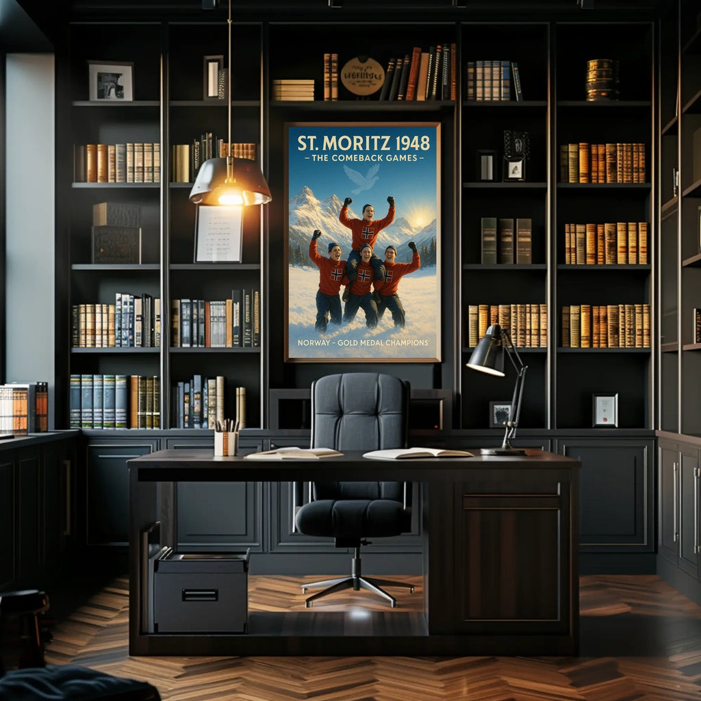 Capture the legacy of a radiant era with the St. Moritz 1948 The Comeback Games Poster. This art print blends vintage charm with modern decor appeal, inviting wanderlust minds to pause, dream, and visualize iconic alpine scenes that sparked global conversations.