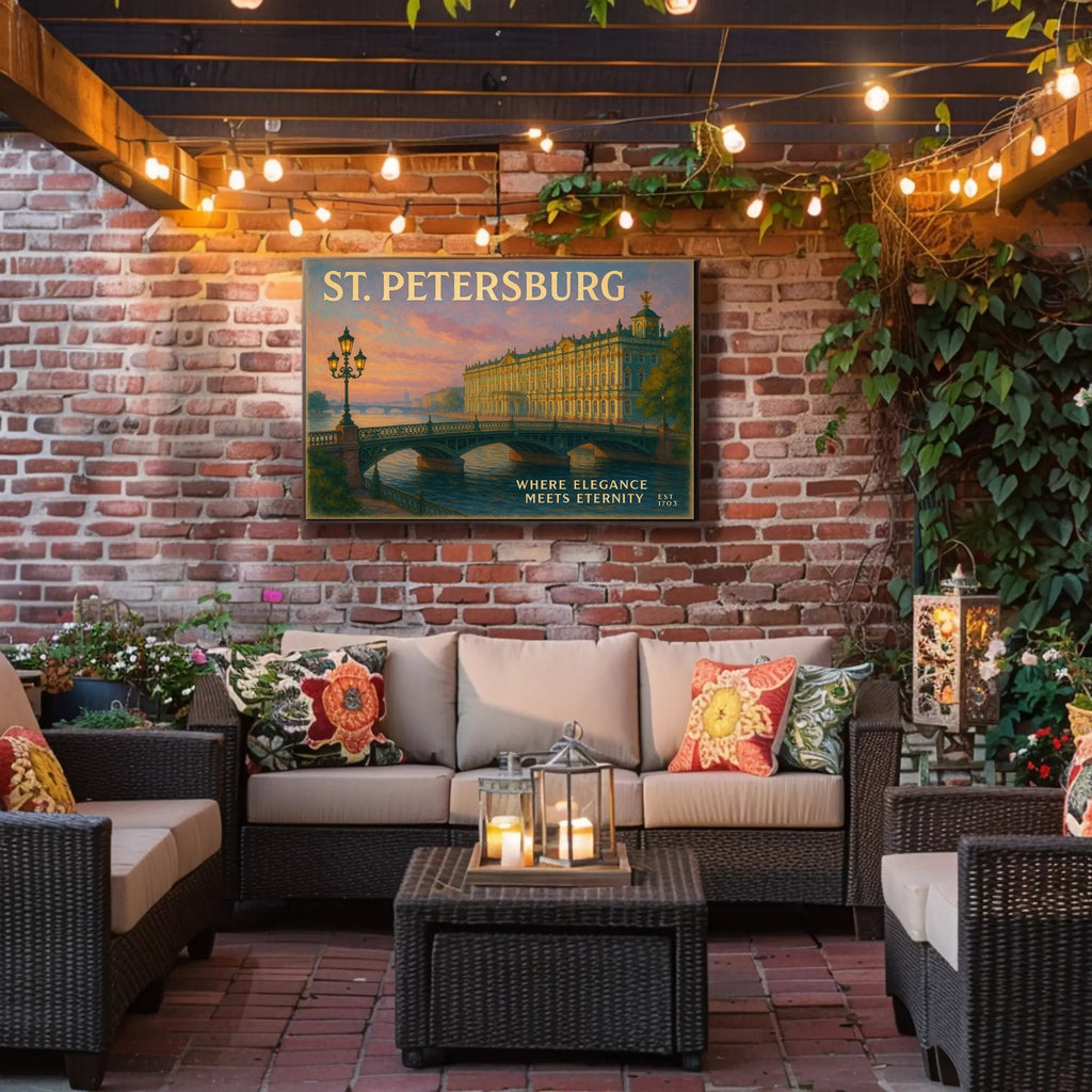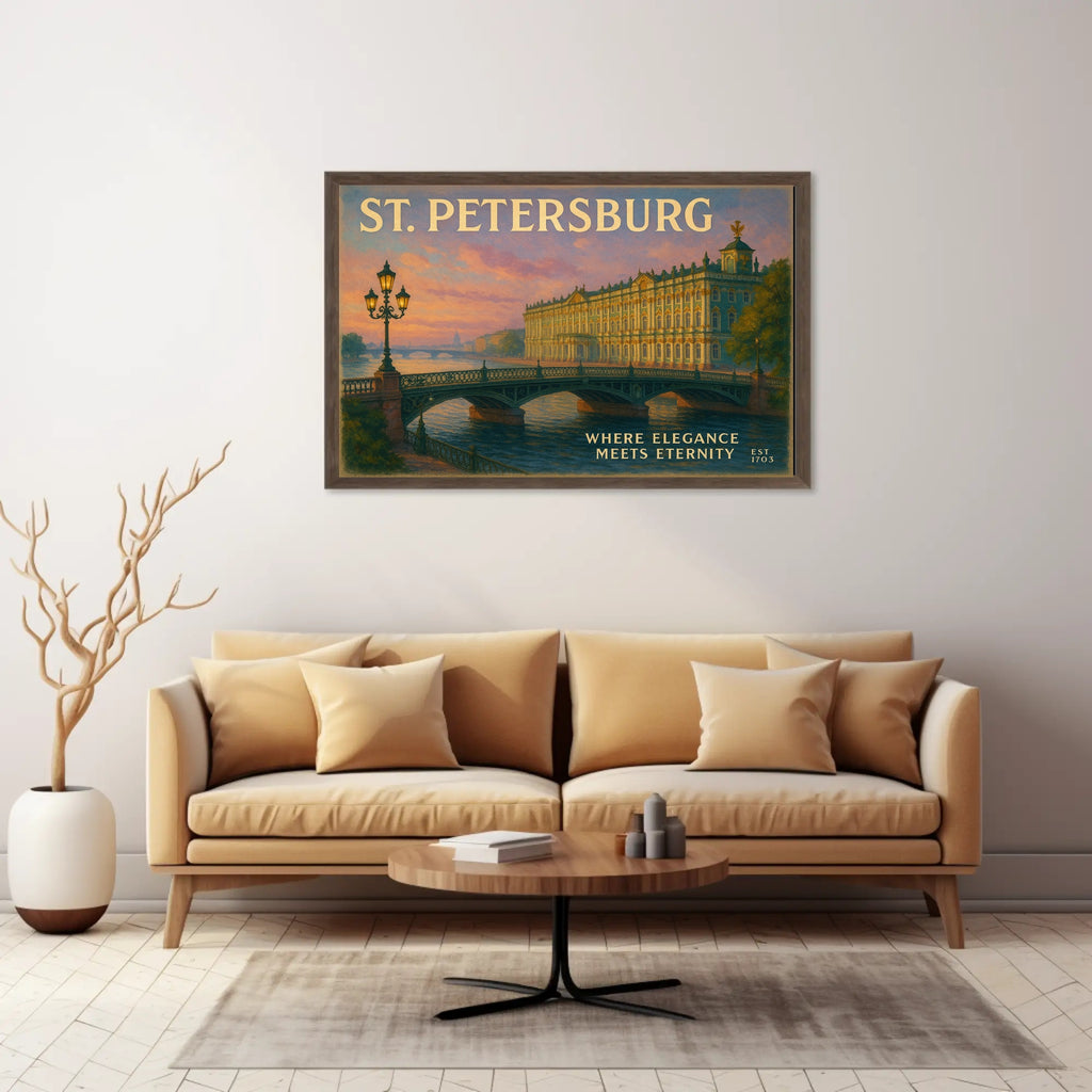 Add a touch of St. Petersburg charm to your wall — order your St. Petersburg Elegance Travel Poster Print today.
