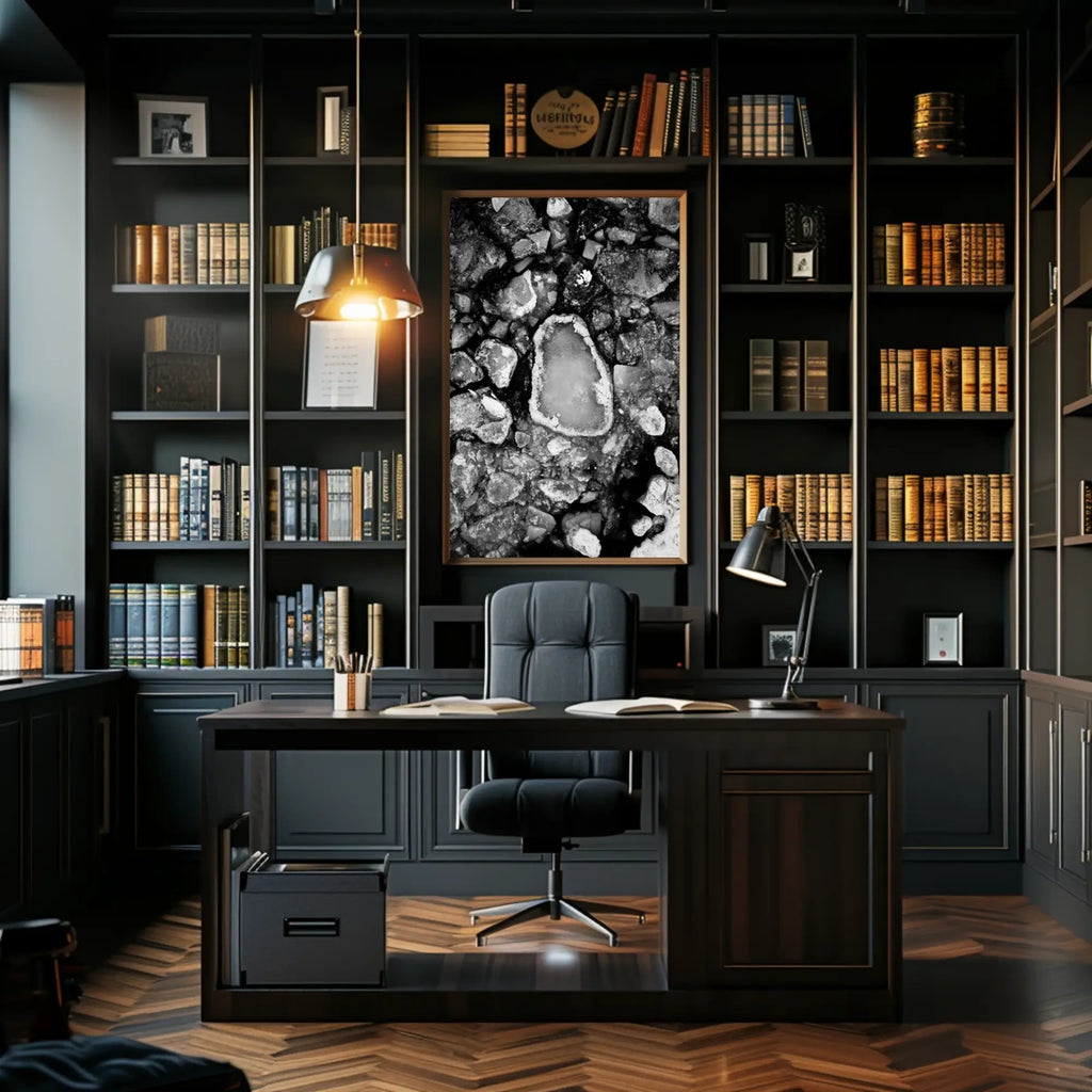 Perfect for fans of abstract art poster, black and white photography, and nature abstract poster aesthetics, this piece adds a cold and remote ambiance to any room and makes a dramatic statement in contemporary spaces.