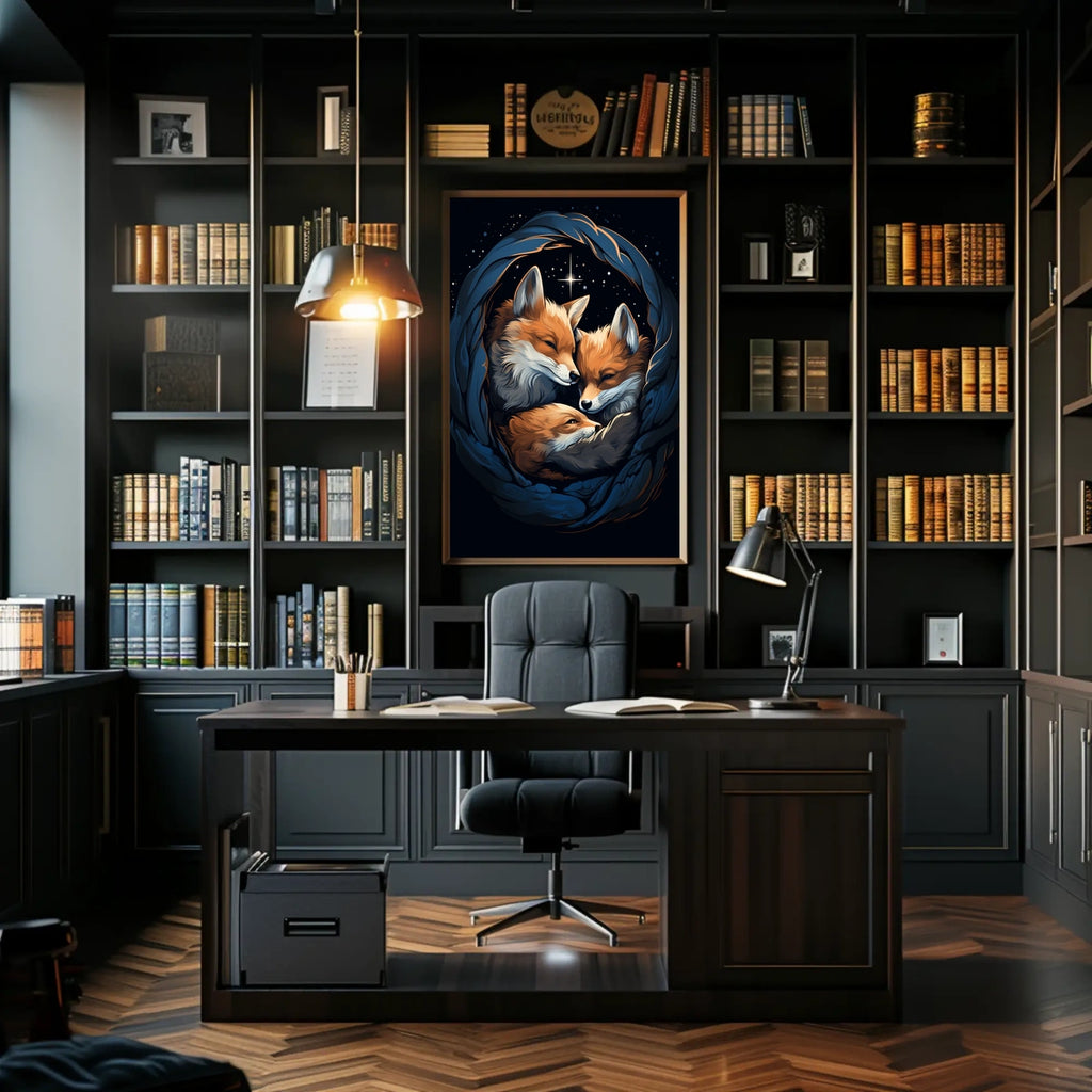 Perfect for living rooms, bedrooms, study corners, or as a thoughtful gift for art lovers, this starry night-inspired foxes poster elevates any space with serene ambiance and scenic detail.