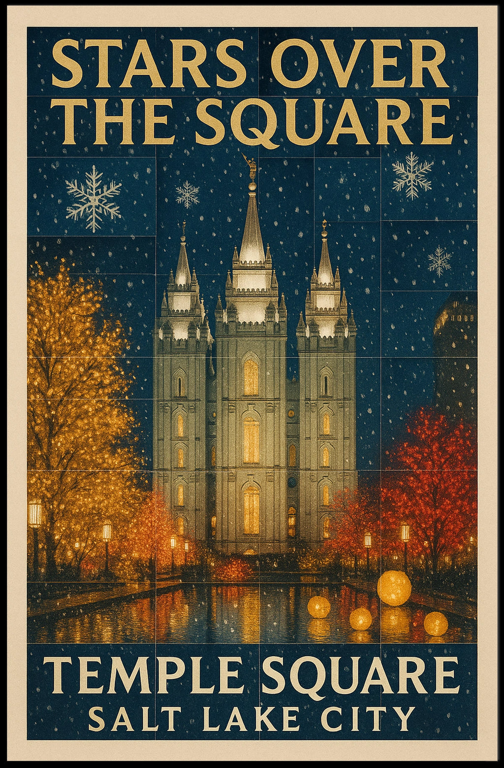 This poster captures the essence of Stars Over Temple Square. Designed for decor lovers and wanderlust spirits, this art print adds charm to any room with visuals inspired by real-world scenery.