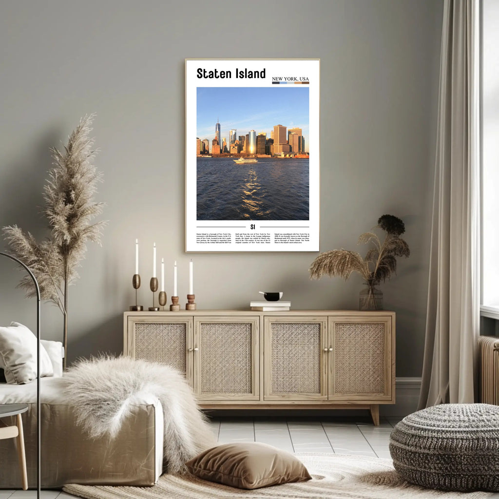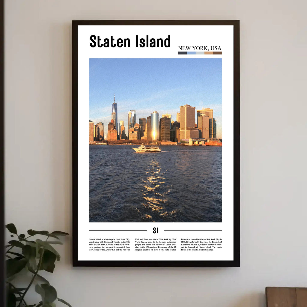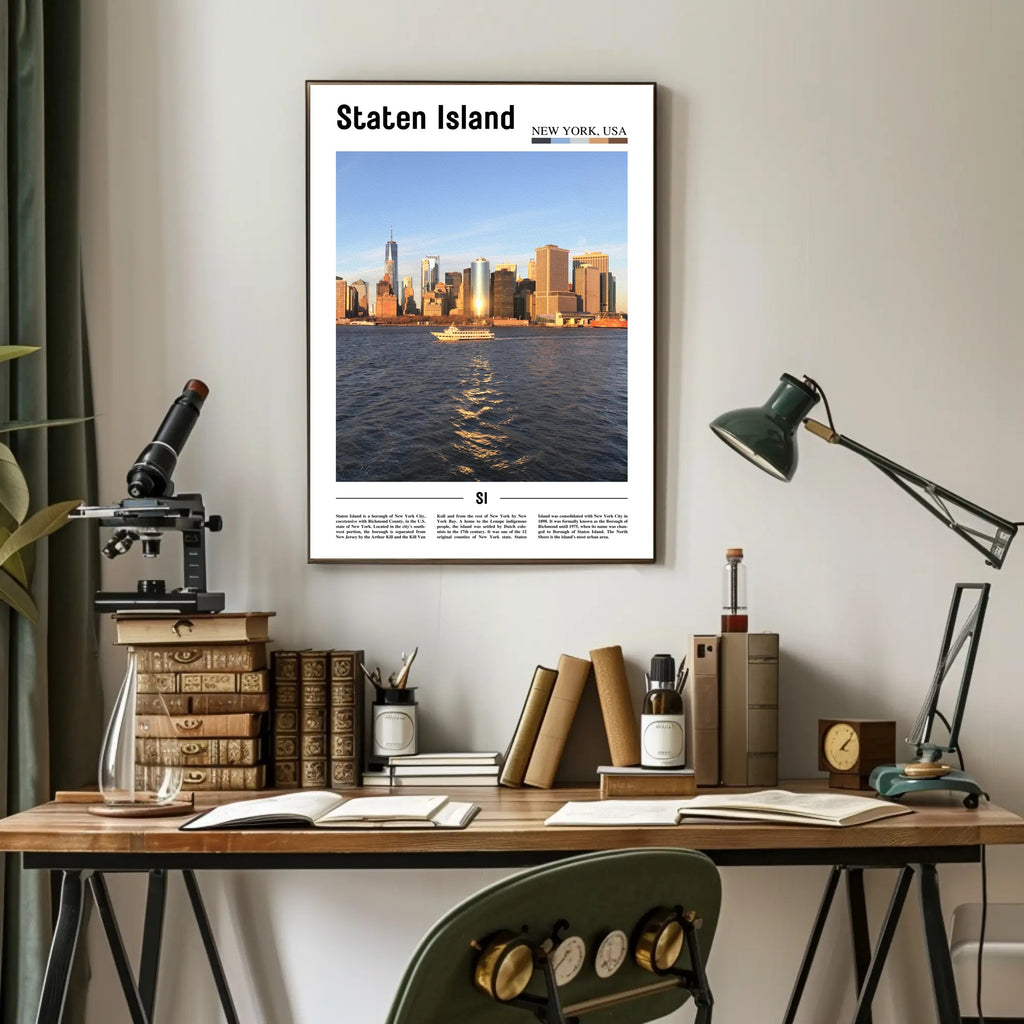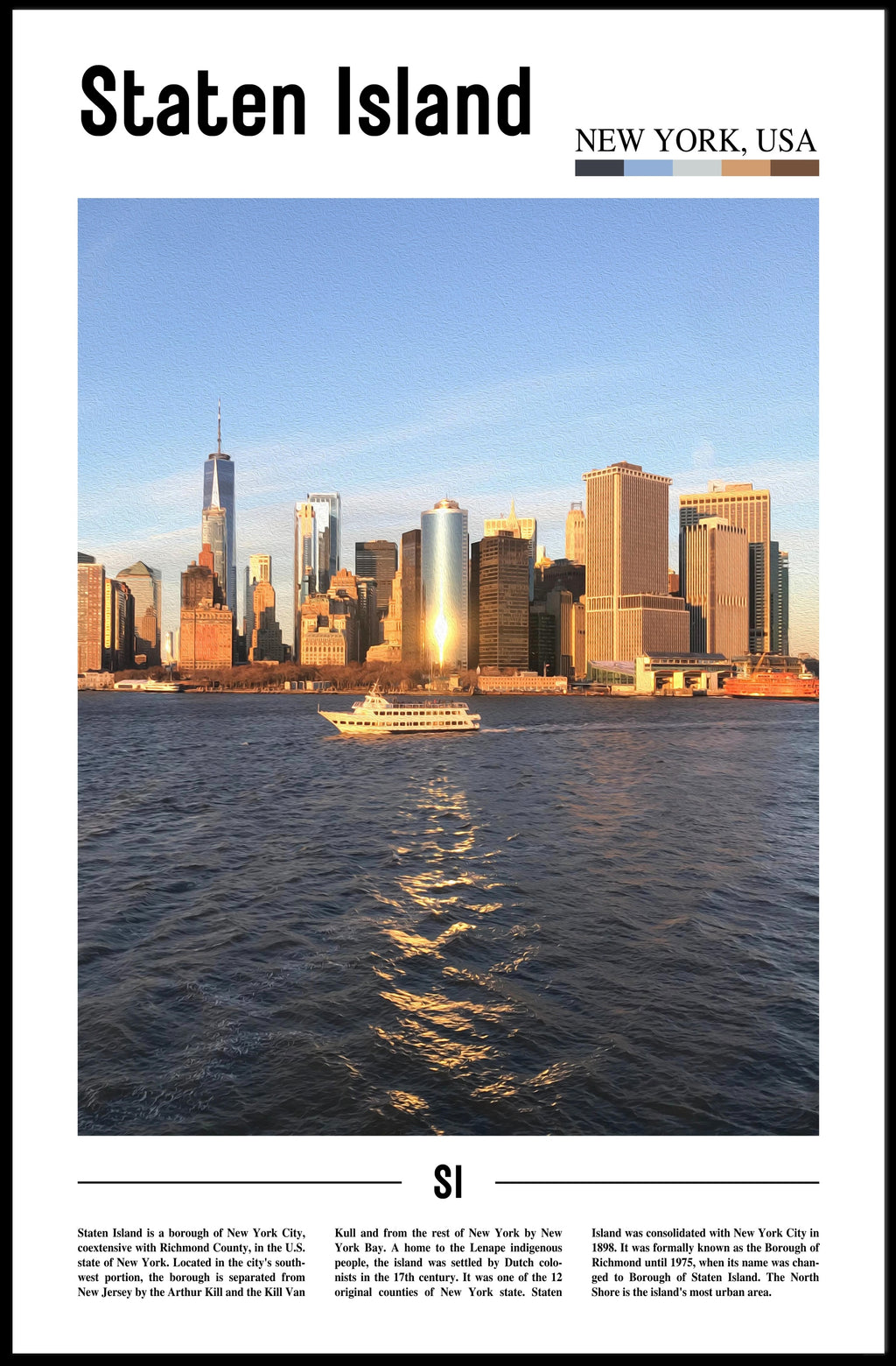 - Clean, modern design: White border with typographic accents (Staten Island / NEW YORK, USA) delivers a gallery-quality look that complements contemporary decor.