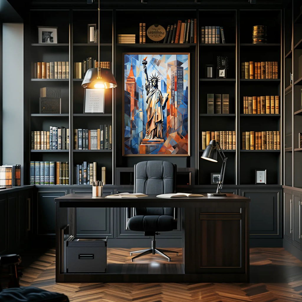 Elevate your home or office decor with the Statue of Liberty Abstract Tribute Poster. Celebrate a symbol of liberty and art today—add this stunning piece to your collection and let your walls tell a story!