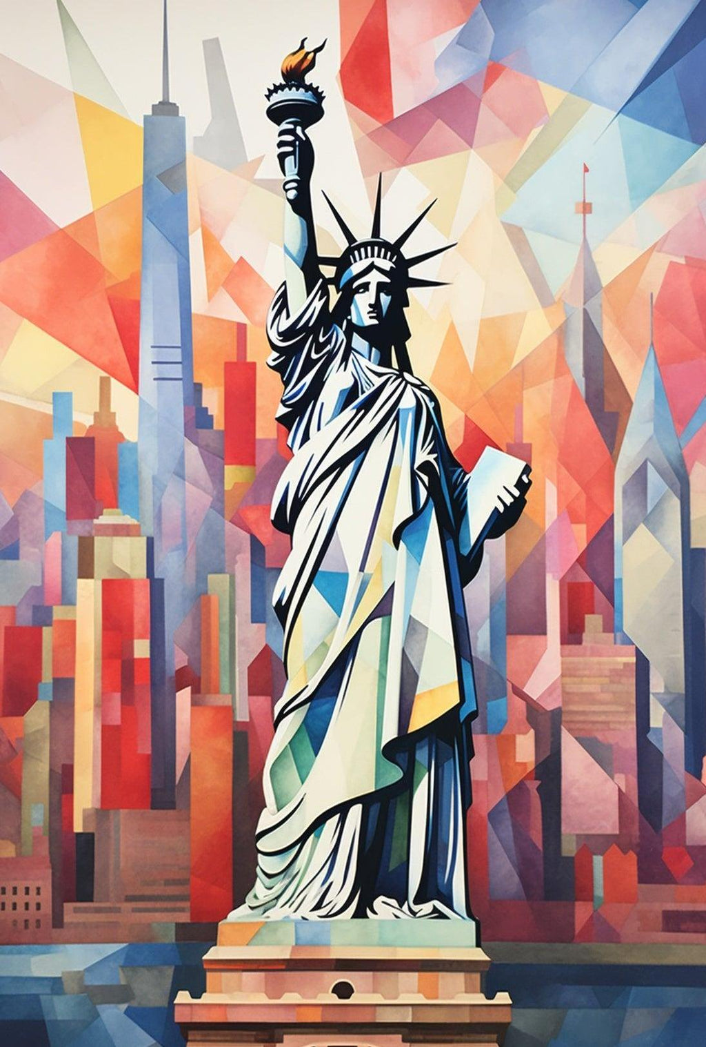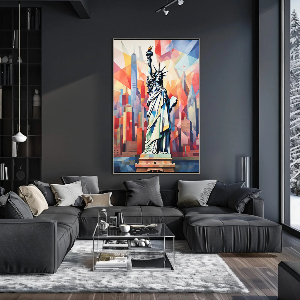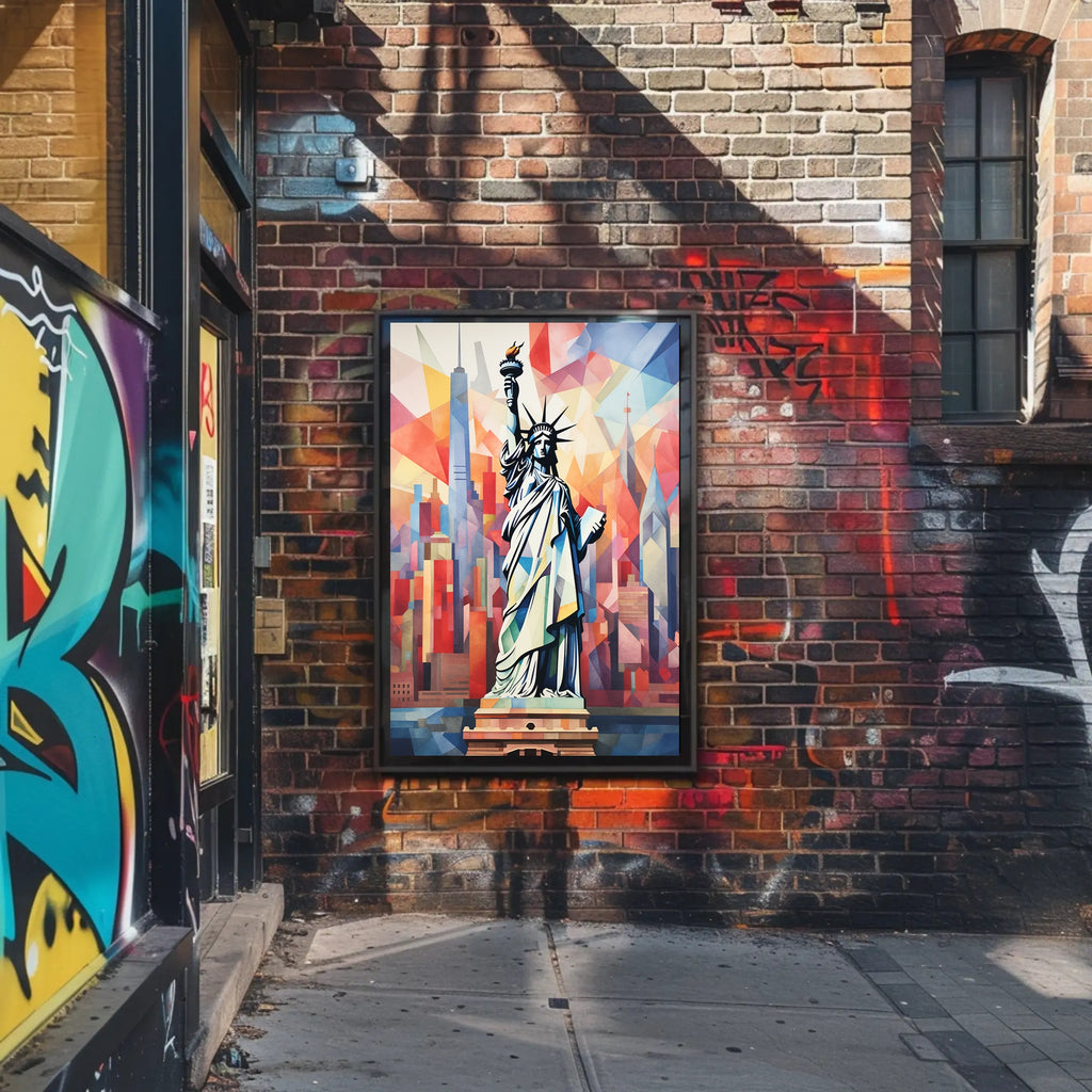 This geometric New York art print is ideal for collectors of urban landscape art and fans of contemporary decor who want a bold centerpiece that celebrates cultural identity and the dynamic energy of the city. Add a burst of color and a symbol of freedom to your space — order your PosterGoat poster today and transform your wall into a vibrant homage to New York.
