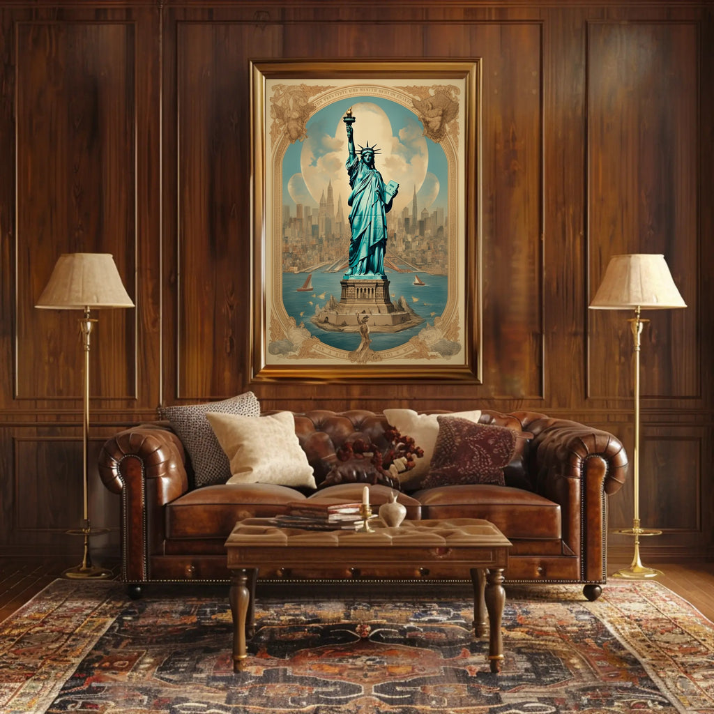 Statue Of Liberty New York Skyline Poster Vintage Wall Art