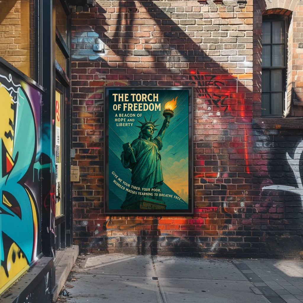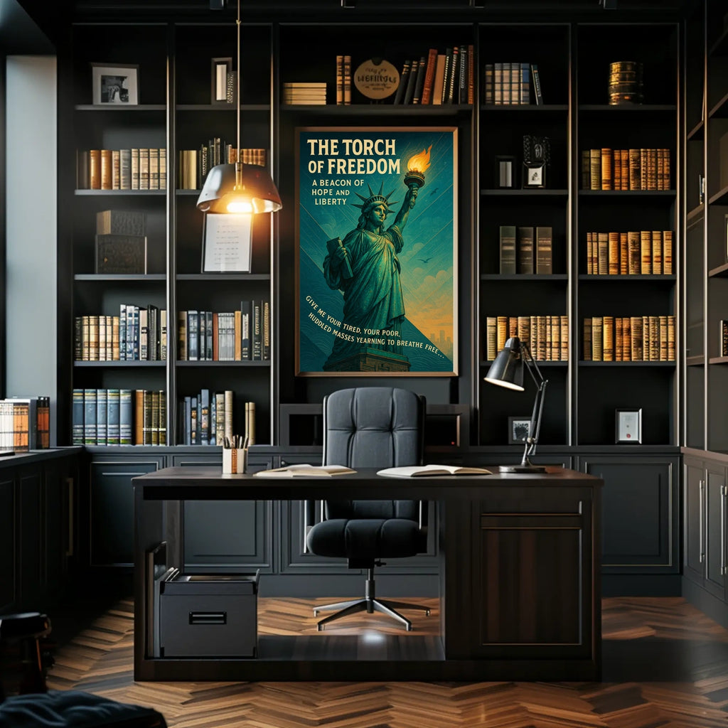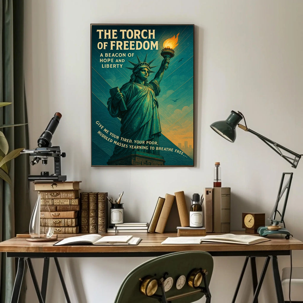 Celebrate freedom and American heritage with this Statue of Liberty Vintage Patriotic Poster. The illustration captures the statue’s enduring symbolism against a warm, textured backdrop, blending a timeless vintage aesthetic with bold, modern print quality. Perfect for living rooms, hallways, or offices, it adds a sense of hope, pride, and timeless grandeur to any space.