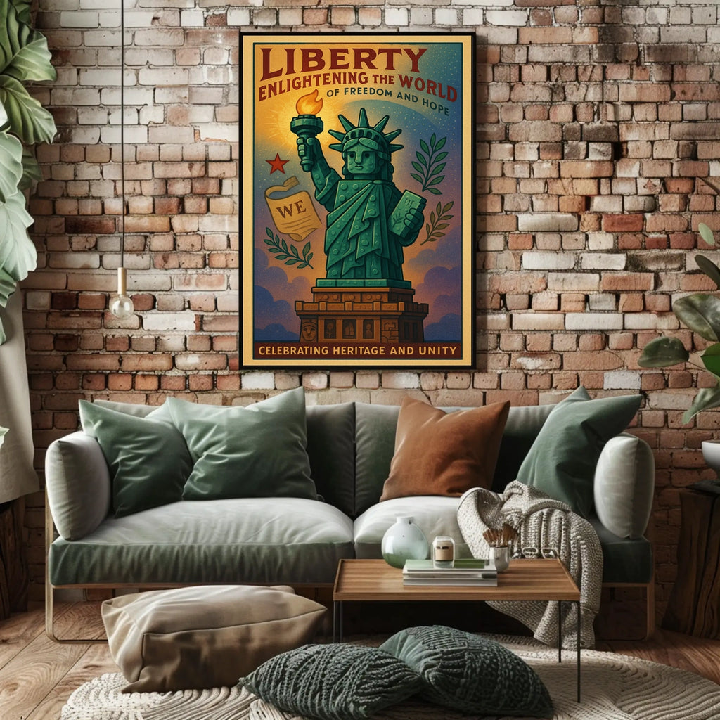 Intro: Drawn in a vintage, illustrative style, this Statue of Liberty poster brings timeless freedom and hopeful unity into any room. Its retro flair and classic imagery celebrate heritage while inspiring conversation, making it a standout piece for patriotic decor or educational spaces.