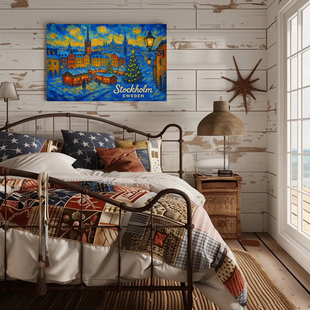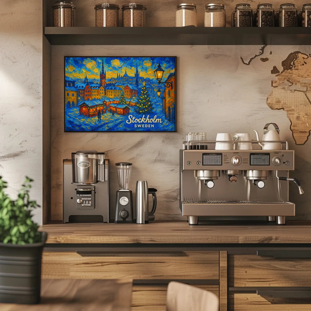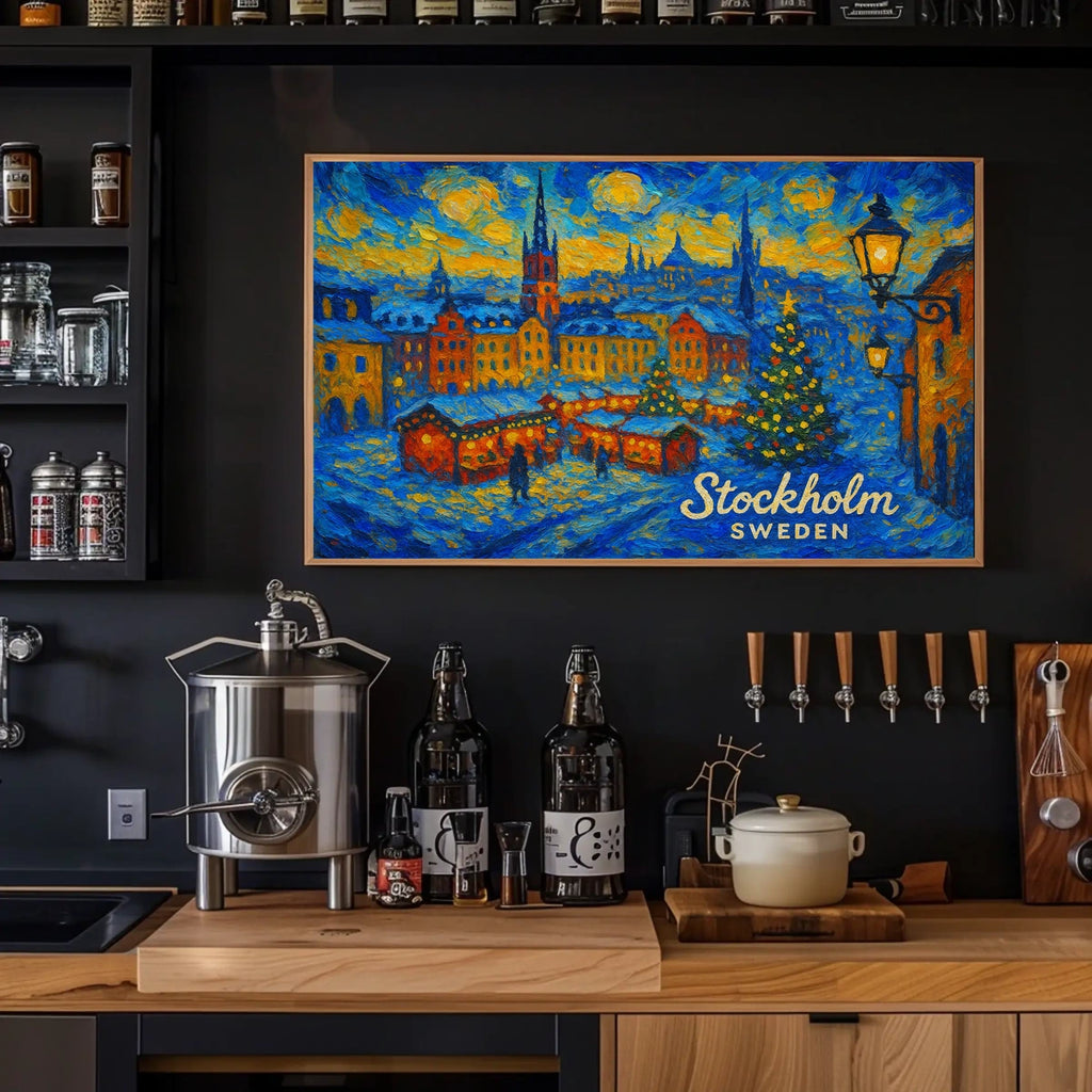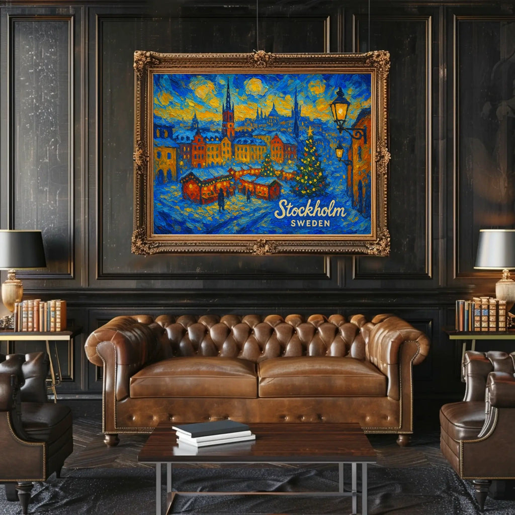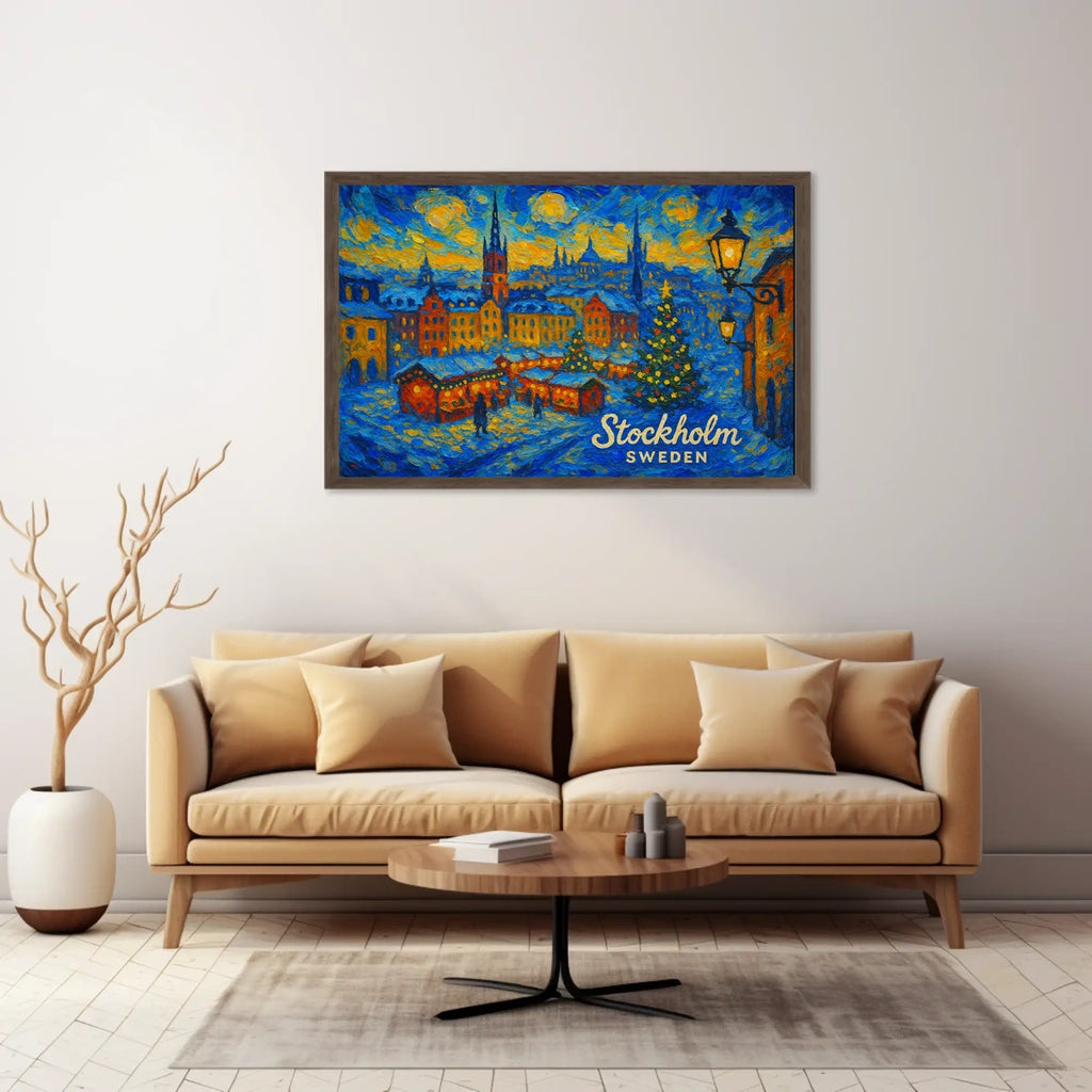 Ideal for homes, dorms, studios, and offices, this Stockholm poster adds a touch of scenic charm and winter wonderland spirit to any space. Perfect as a gift for art lovers and travelers alike.
