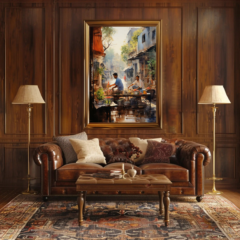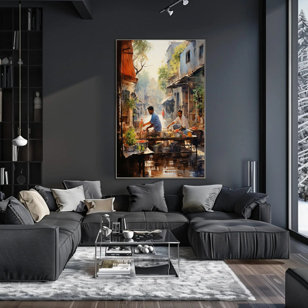 - Subthemes: street, market, morning — ideal for scenic wall art lovers