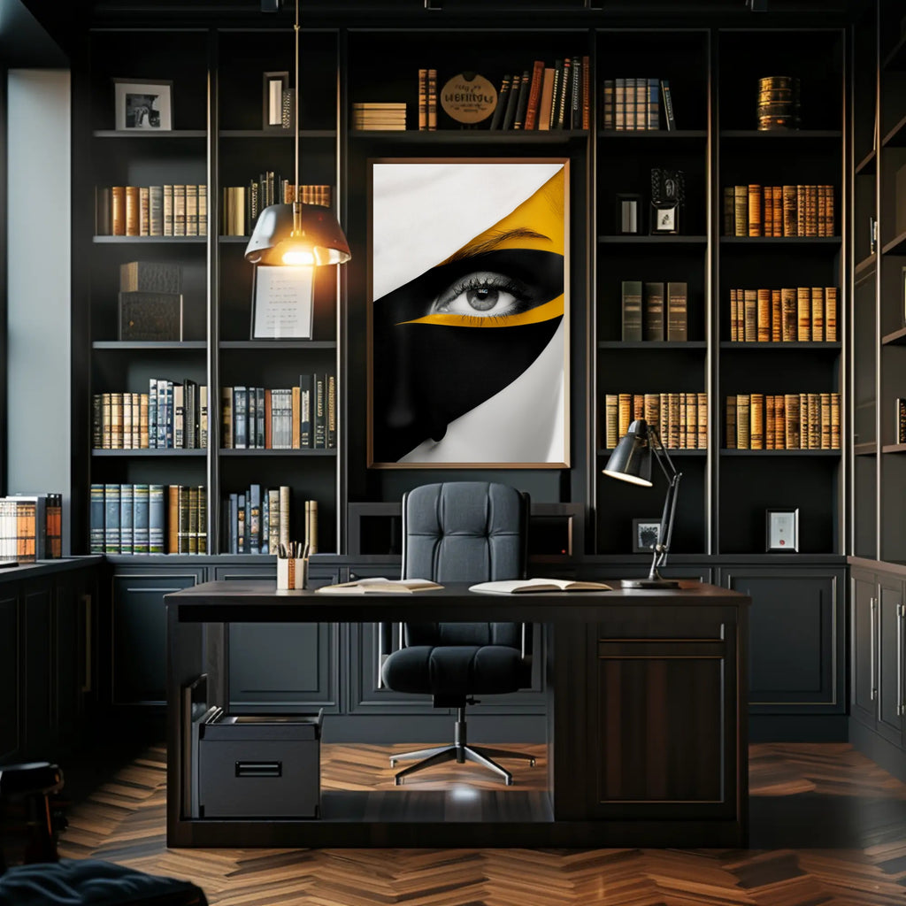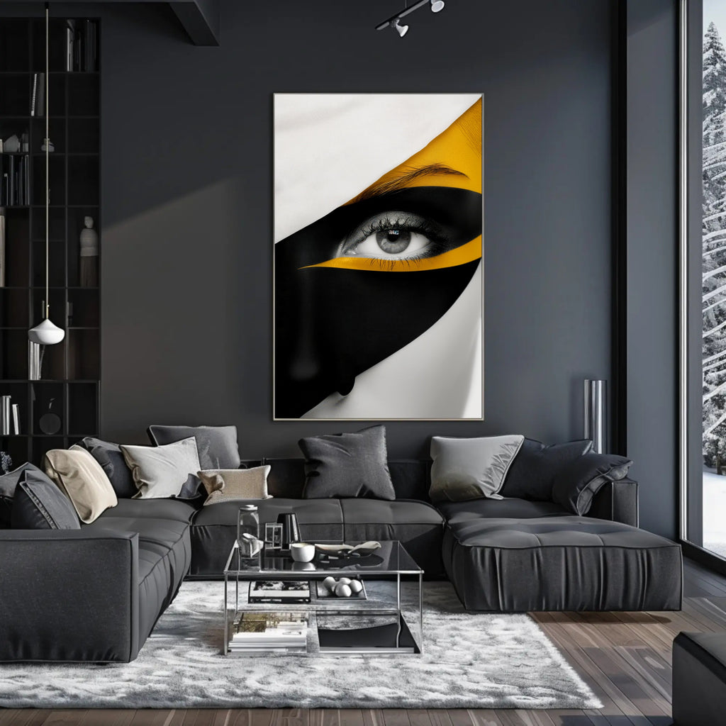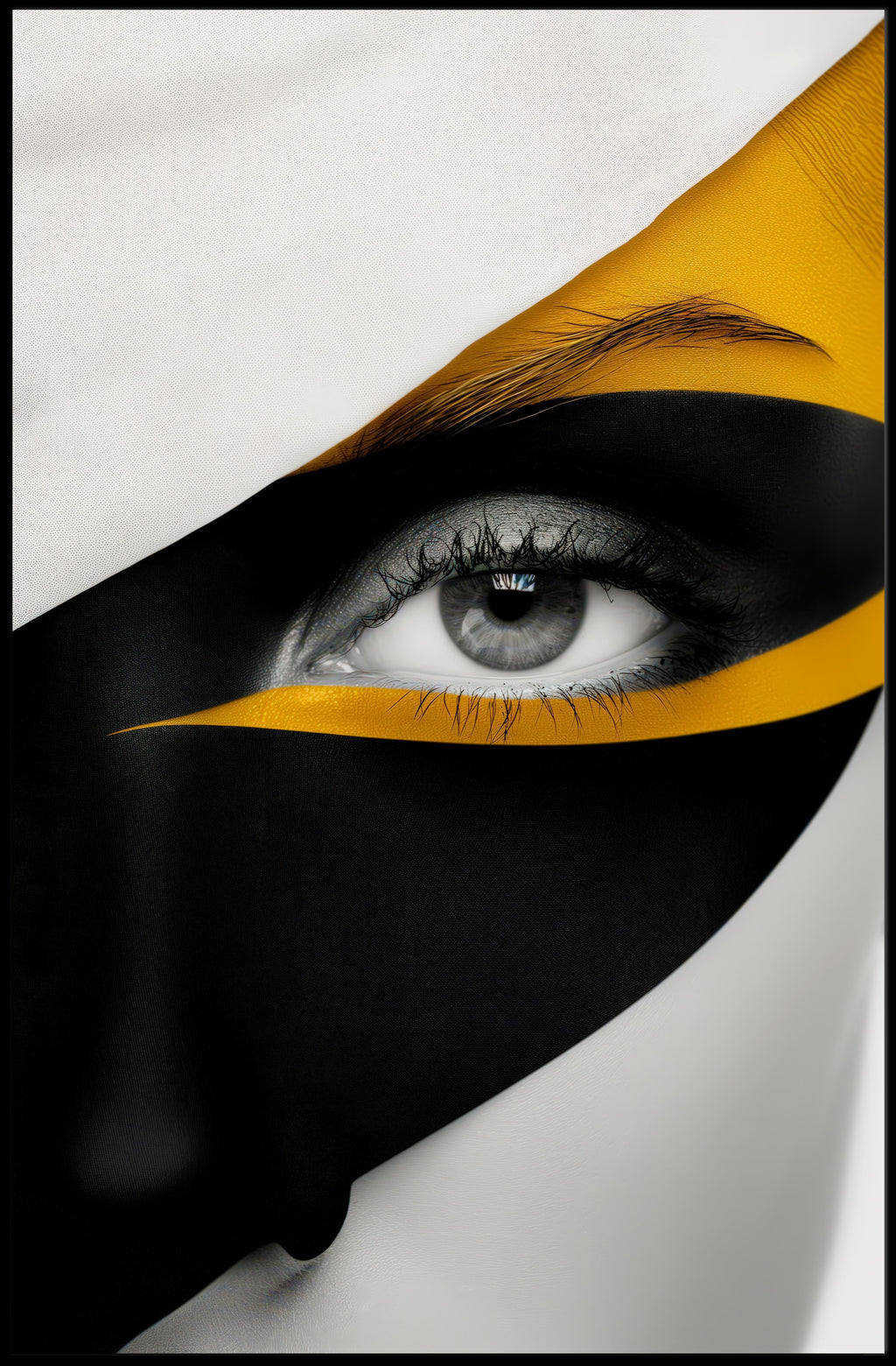 Enhance your living space with this captivating eye-themed poster. Featuring a striking close-up of an eye adorned with bold black and gold brushstrokes, this piece combines photorealism and abstract art. The intriguing design fosters a sense of mystery and sophistication, making it a standout addition to any room. Its vivid contrast and dynamic composition offer an exquisite artistic flair that draws the viewer in. Perfect for those who appreciate contemporary art, this poster is more than just wall decor—it's a conversation starter. Transform your aesthetic with this visually stunning masterpiece.