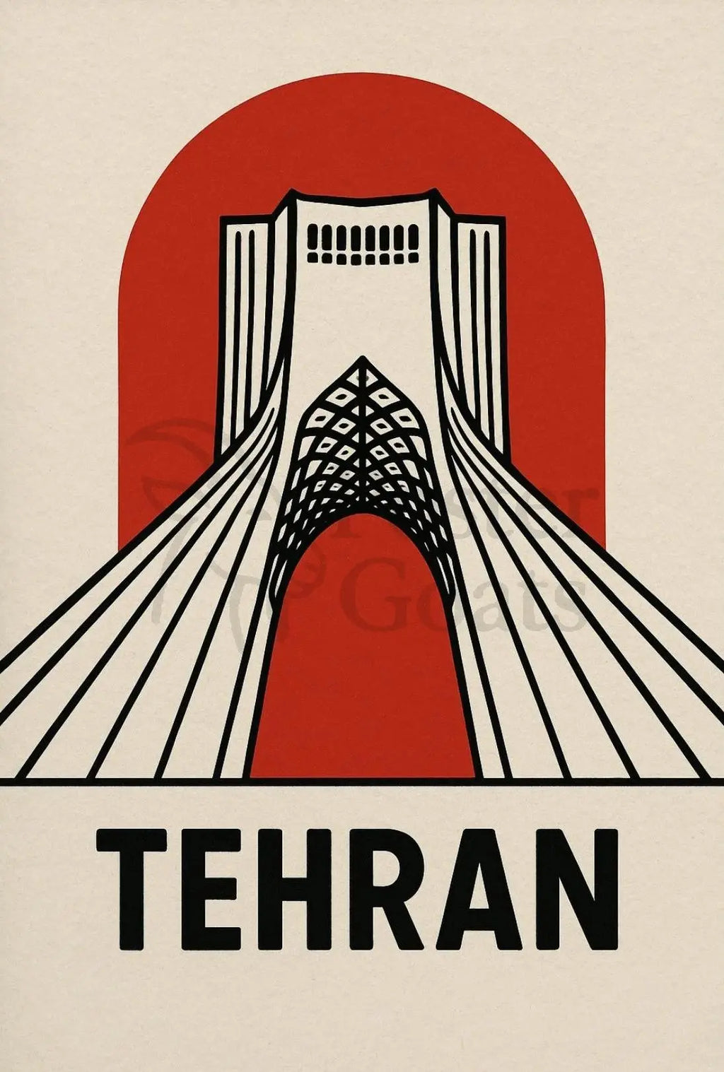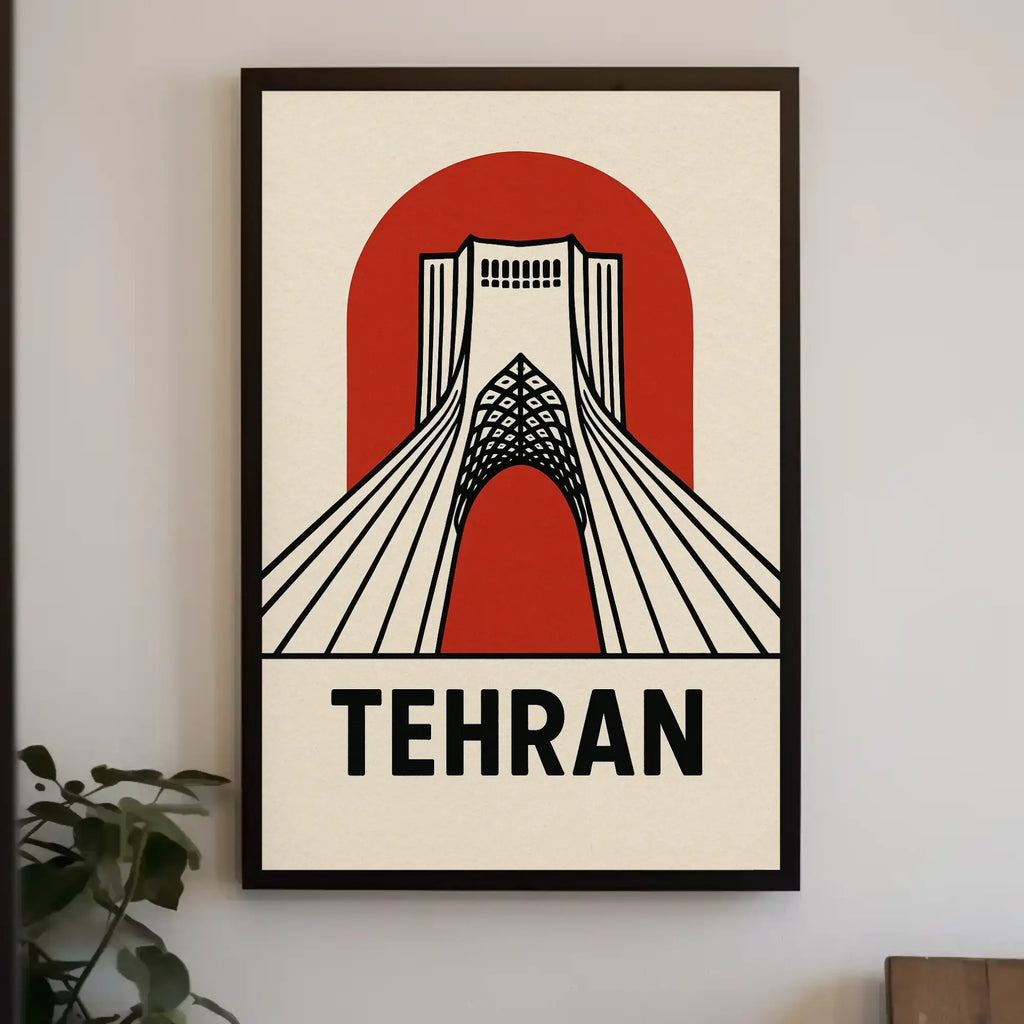 Celebrate Tehran's architectural marvel with this striking poster featuring the iconic Azadi Tower. Its minimalistic and geometric design, combined with a bold color palette of red, black, and cream, offers a contemporary take on this historical landmark. The bold lines and contrasting hues convey a sense of modernity and pride, making it an ideal addition for those looking to honor Iran’s cultural heritage. Perfect for home or office spaces, this artwork serves as a daily reminder of Tehran's rich history and vibrant identity.