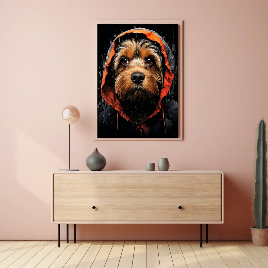 - Printed with precision and made to inspire, this artwork is more than decoration—it’s a conversation piece that connects animal charm, fashion, and design. Bring Stylized Dog in Hooded Raincoat into your home, classroom, or office today and let your walls tell a powerful story.