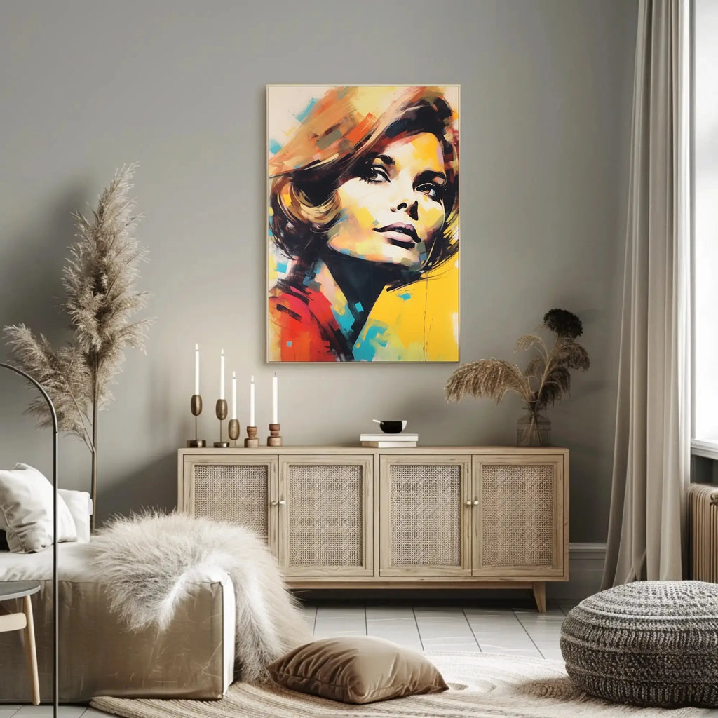 Why it works: The poster’s expressive strokes and color layering draw the eye while the elegant profile evokes mid-century sophistication—making it both a decorative accent and a conversation starter. It pairs beautifully with minimalist frames or bold black mats to enhance contrast.