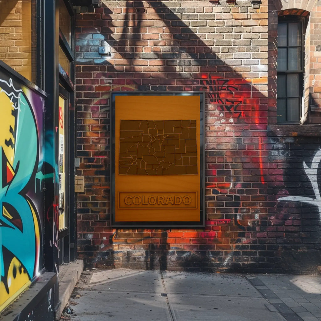 Why you’ll love it: The restrained color palette and precise county outlines make this piece highly versatile—pair it with neutral furnishings or use it as a standout accent against textured walls. It’s an ideal choice for Colorado natives, road-trip lovers, and anyone who appreciates geography rendered as art.