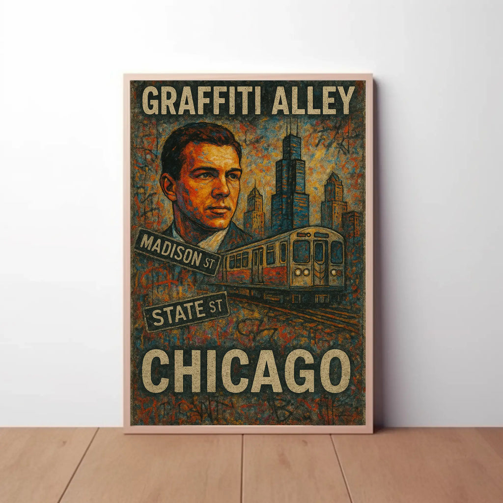 - Street‑level details: Authentic signage reading "Madison St" and "State St" and a layered graffiti background give the poster a nostalgic, gritty alleyway feel.