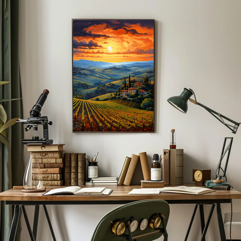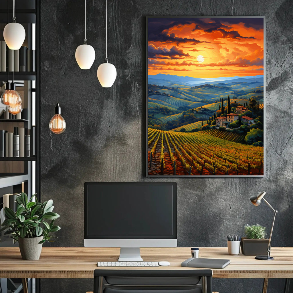 Transform Your Space with the Sunset Over Tuscan Vineyards Poster