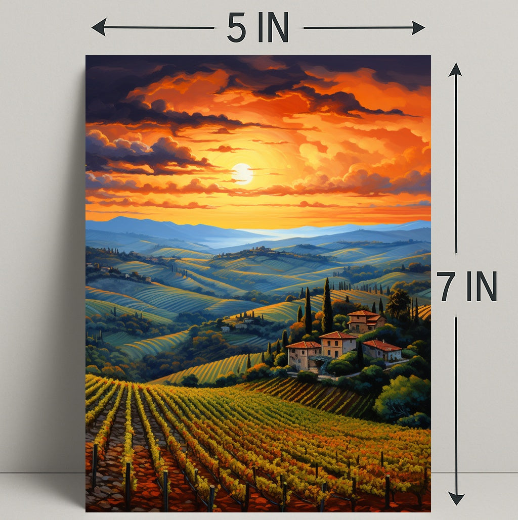 Stunning Visuals: The rich colors and detailed scenery vividly depict the serene beauty of Tuscan vineyards at sunset.