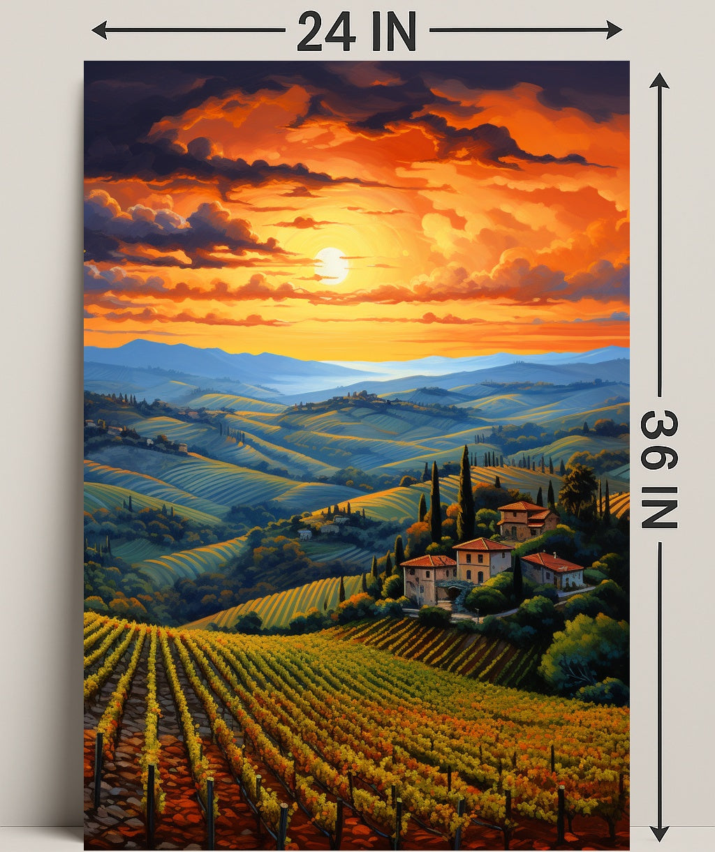 Enhance your living environment with the Sunset Over Tuscan Vineyards Poster. With its captivating imagery and quality craftsmanship, this piece is sure to be a conversation starter. Donβt miss out on the chance to transform your spaceβorder yours today and bring a piece of Tuscany home!