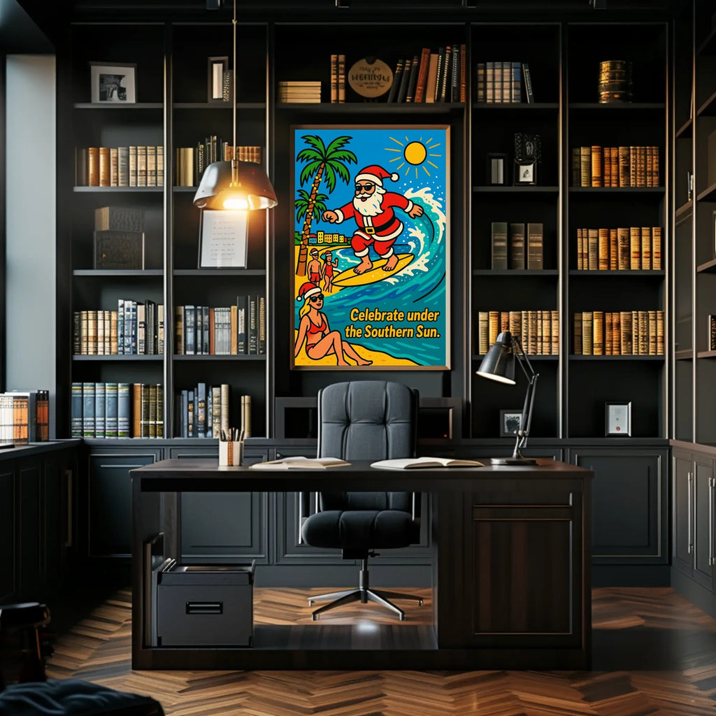 This poster captures the essence of Surfing Santa Celebrate Under the Southern Sun. Designed for decor lovers and wanderlust spirits, this art print adds charm to any room with visuals inspired by real-world scenery.