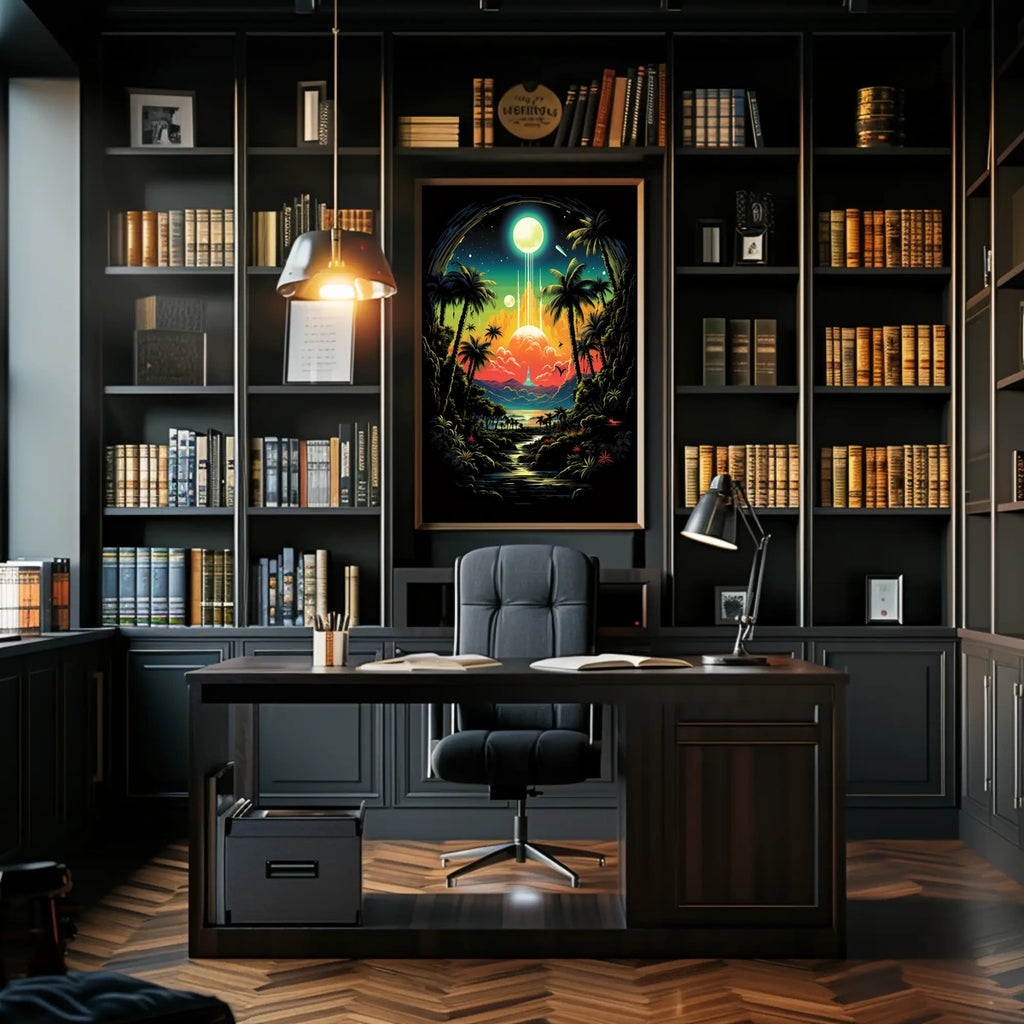 Printed with precision and made to inspire, this artwork is more than decoration—it’s a conversation piece that connects nature, space, and imagination. Bring Surreal Cosmic Jungle Landscape Poster Art into your home, classroom, or office today and let your walls tell a powerful story. This piece embodies bold color wall art, celestial body artwork, cosmic jungle art, and a dreamy landscape poster, transforming any space into a tropical fantasy with vibrant surrealism.