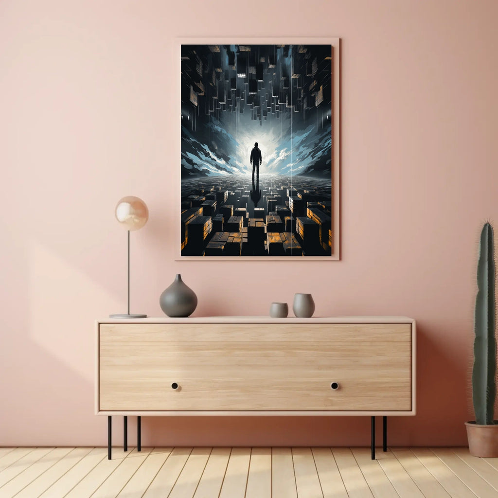Perfect for fans of abstract virtual realm aesthetics and contemporary design, this futuristic landscape poster blends digital abstraction with surreal print appeal to spark curiosity in any space. Ideal for living rooms, creative studios, classrooms, or modern workspaces, it invites dialogue about what lies ahead at the intersection of art and technology.