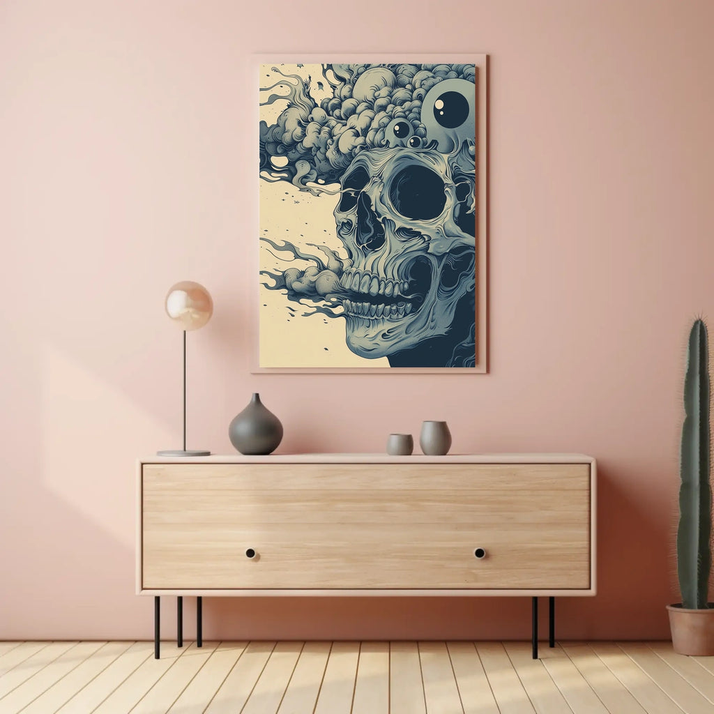 Ideal for eclectic home decor or art collections, this surreal skull poster is designed to inspire conversation and captivate attention in any space.