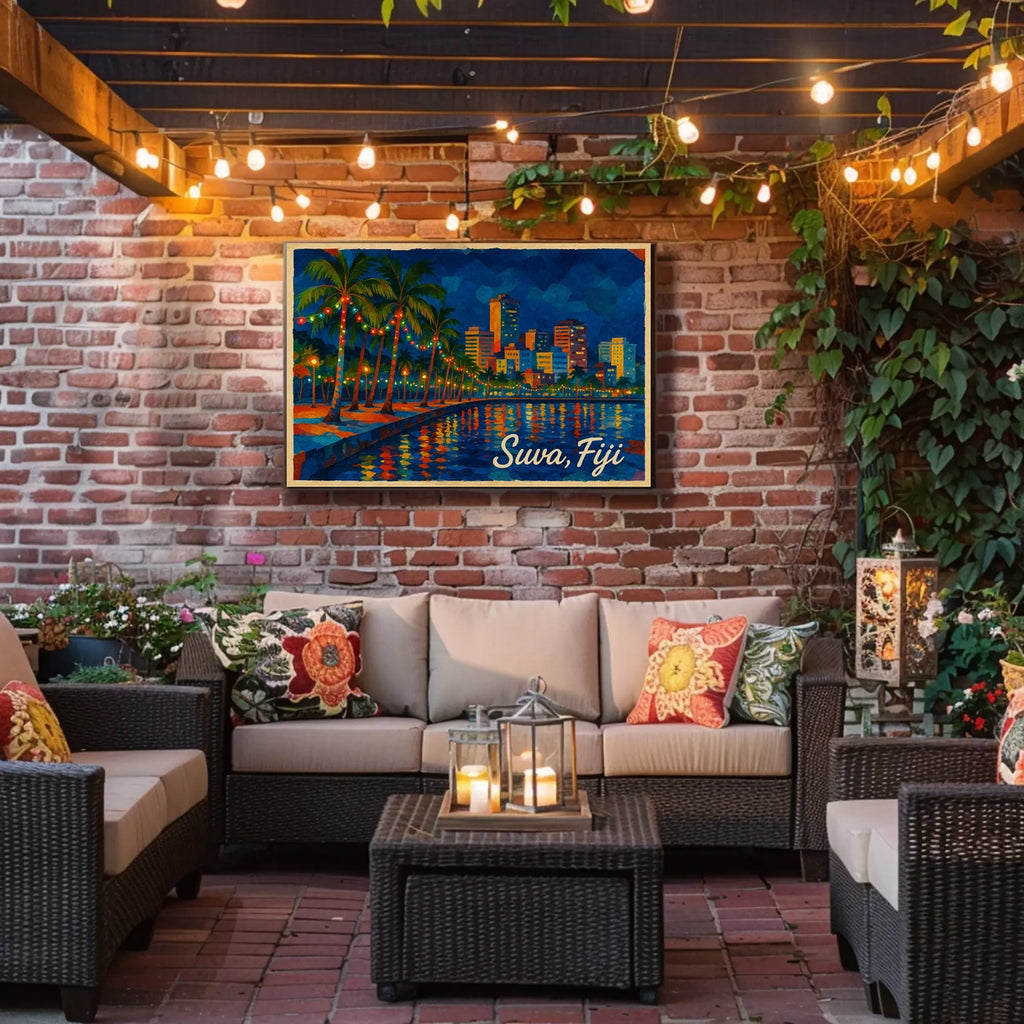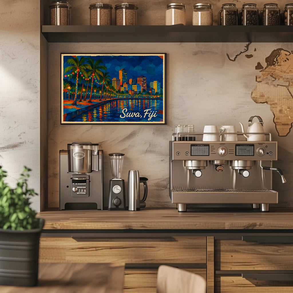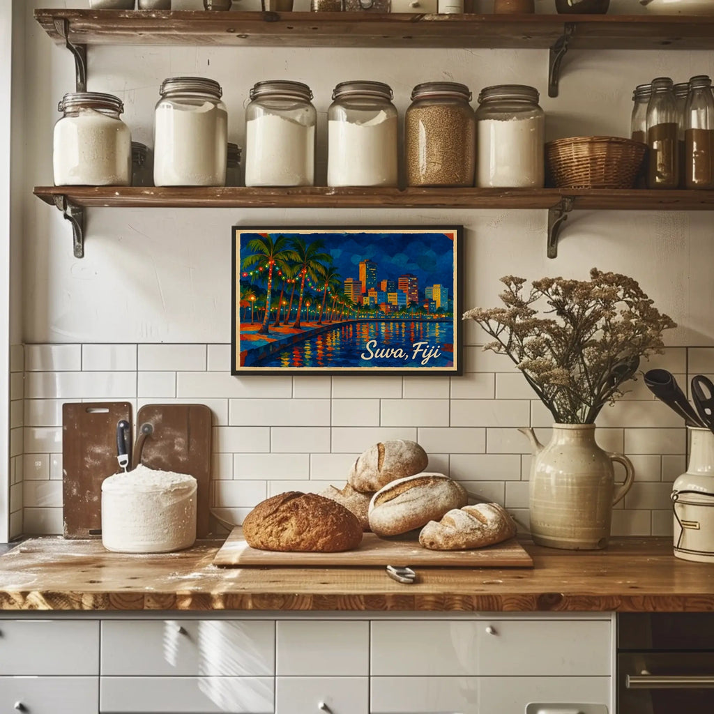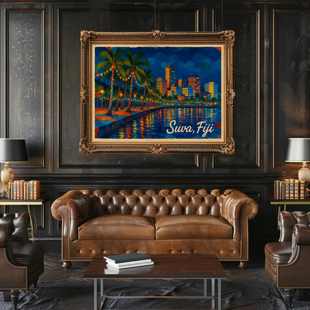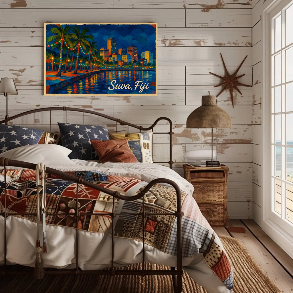 This poster captures the essence of Suva, Fiji Nighttime Cityscape. Designed for decor lovers and wanderlust spirits, this art print adds charm to any room with visuals inspired by real-world scenery.
