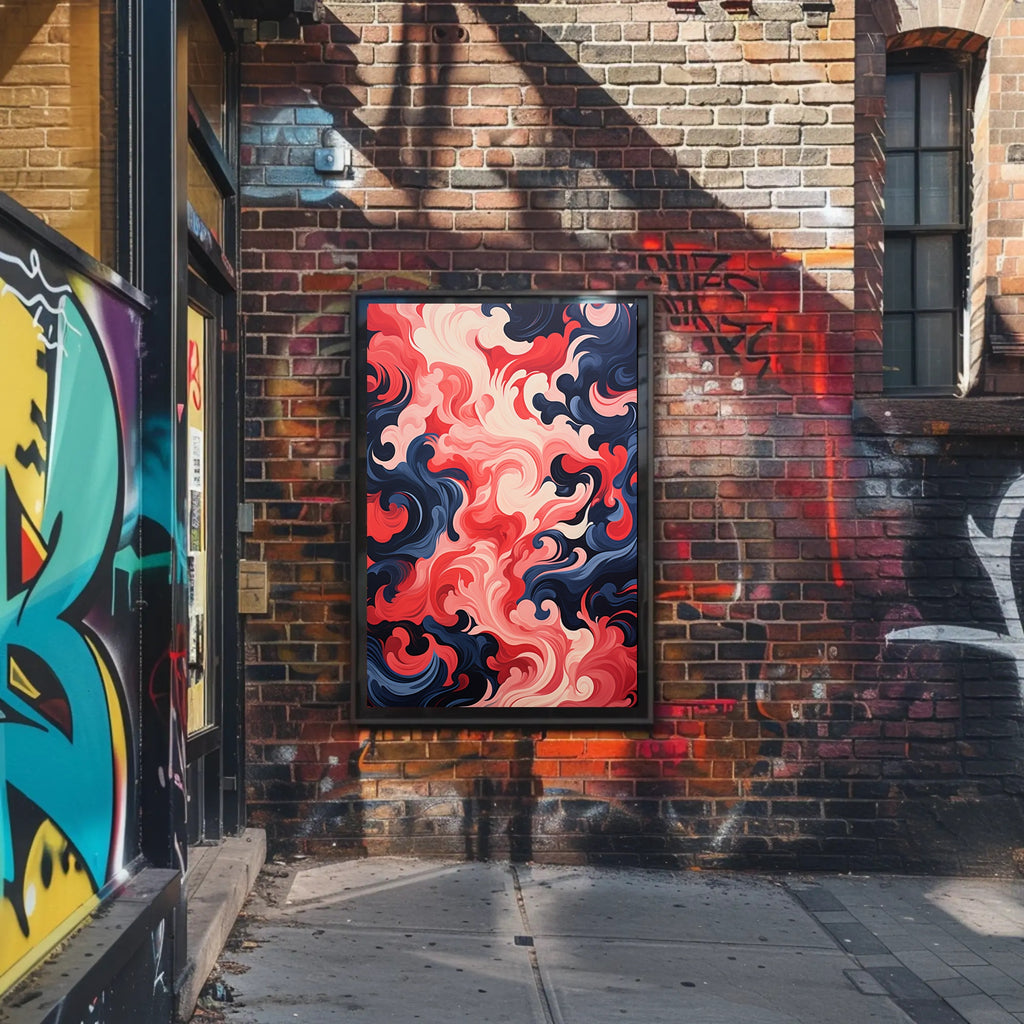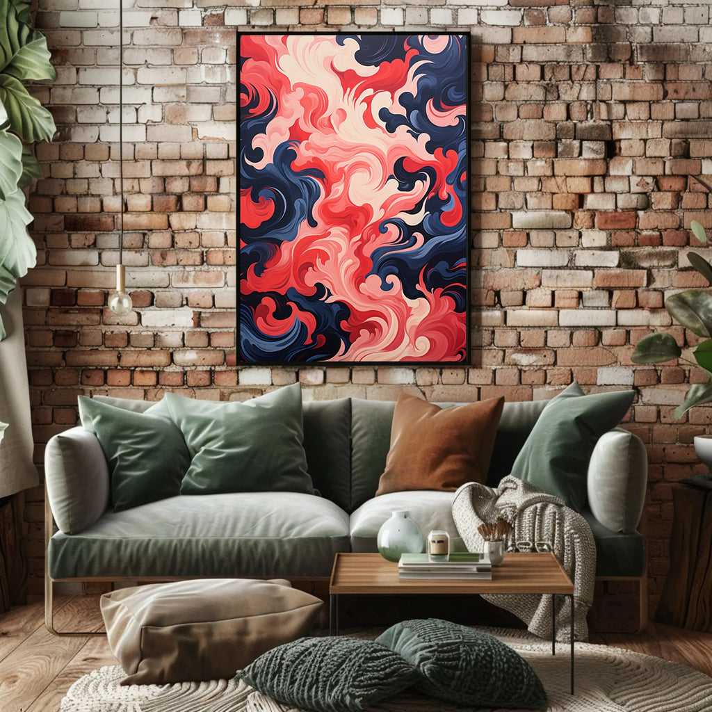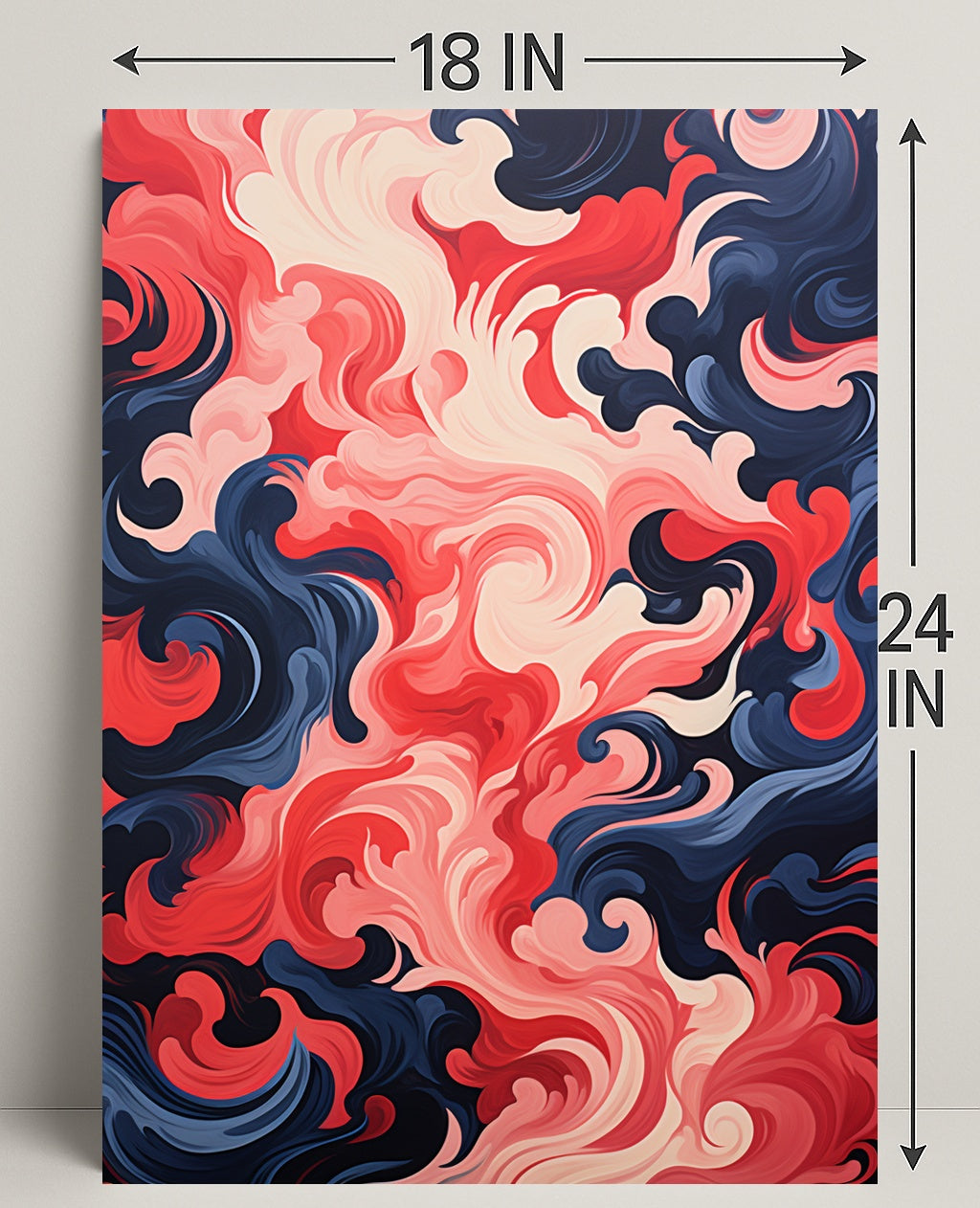 Swirling Abstract Waves Abstract Poster from PosterGoat brings dynamic motion and refined color into any living space — a minimalist, artful poster that reads like a modern painting. Rich swirls of coral-red, navy and soft cream blend into flowing wave-like forms, creating an energizing focal point for living rooms, bedrooms, offices, or gallery walls.